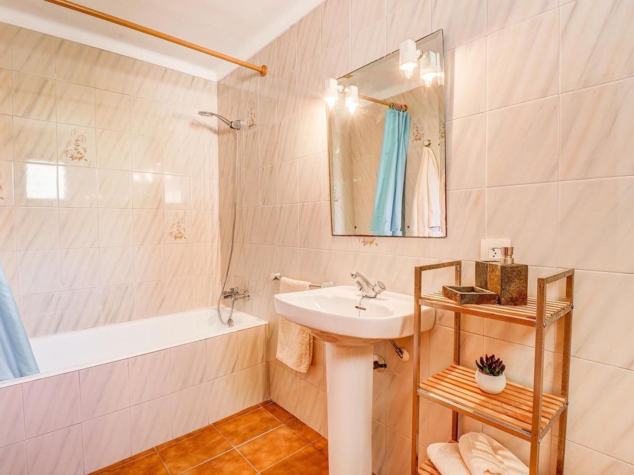 The interior features wooden furniture in a comfortable and cosy layout. As soon as you enter, you will find the dining room, which communicates with a living room equipped with satellite TV and DVD player, which in turn communicates with the pool area. The kitchen is equipped with microwave, dishwasher, gas and electric oven and fridge/freezer. There is also a utility room with a washing machine. On the same floor there is a double bedroom with an en-suite bathroom, a twin bedroom, and a second bathroom. Upstairs there is a double bedroom, a twin bedroom, and a third bathroom.