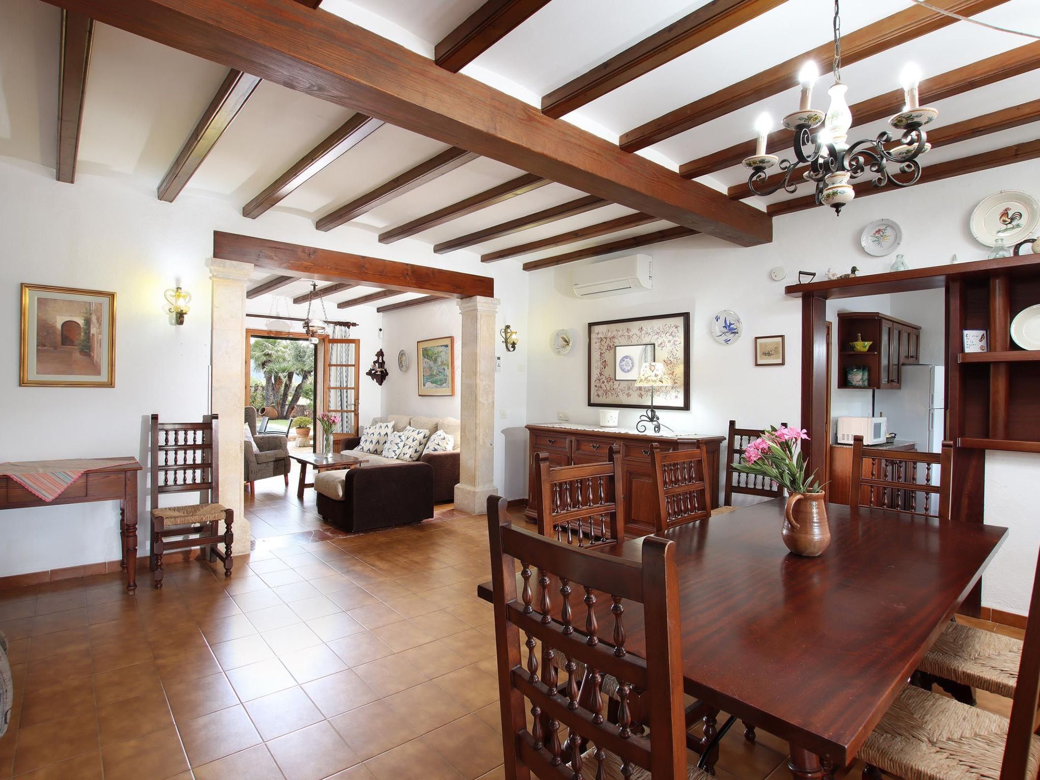This pretty, stone-lined country house is situated at the end of a road close to the residential area of La Font, in the municipality of Pollensa. The swimming pool is at the back of the house and is surrounded by furnished terraces and a nice garden with lawn.