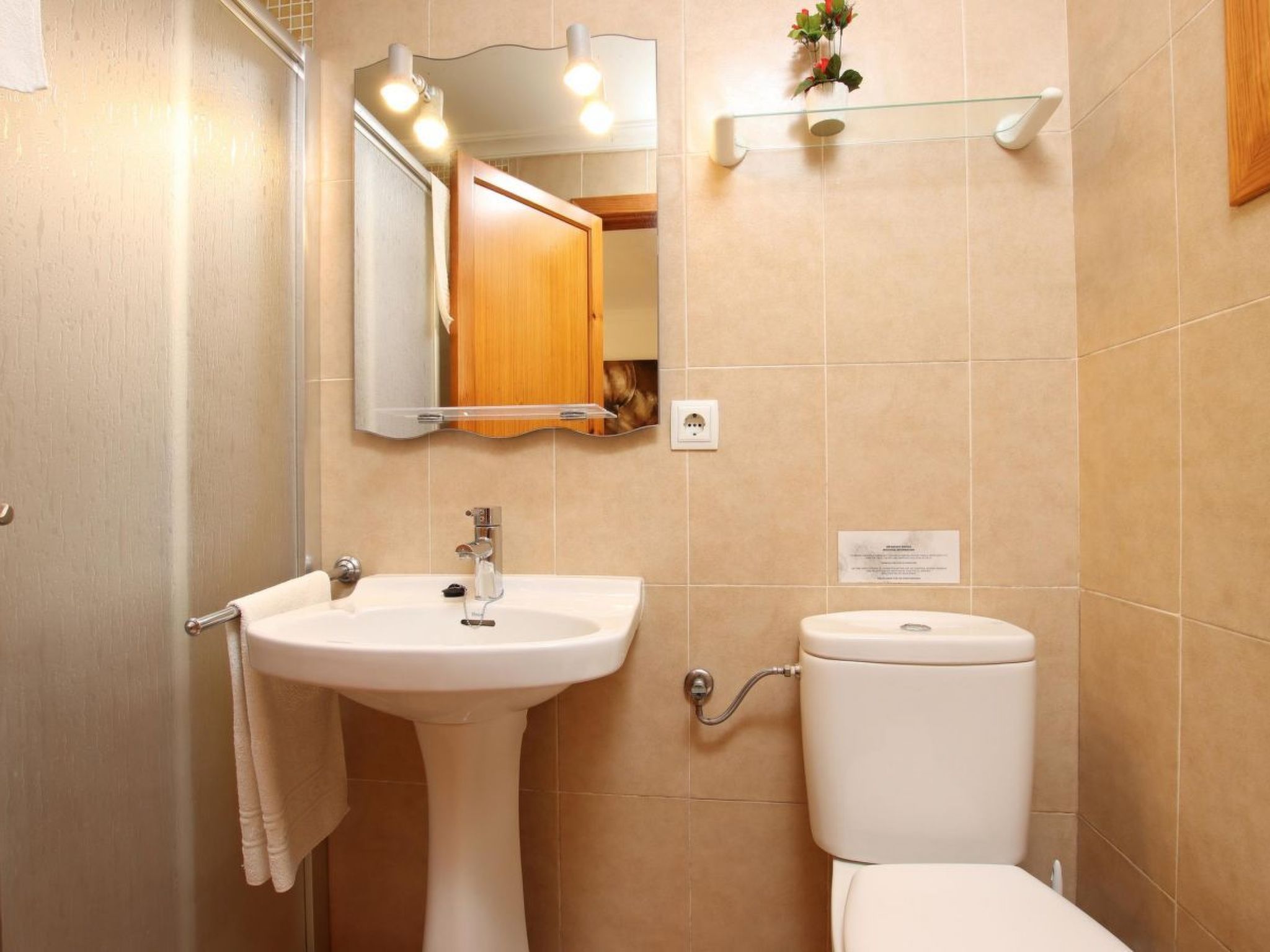 From the main entrance we reach a cosy dining room, fully equipped with dining table and chairs and a sofa with armchairs. On the other side of the entrance is the kitchen, equipped with fridge/freezer, electric oven, electric hob, microwave and other utensils necessary in a holiday home of this category. The dishwasher and washing machine are located in the utility room next to the kitchen. A corridor gives access to the bedrooms, which consist of one double and two twin bedrooms, all sharing two bathrooms, one with bath and the other with shower. All bedrooms are equipped with air conditioning and fitted wardrobes.
