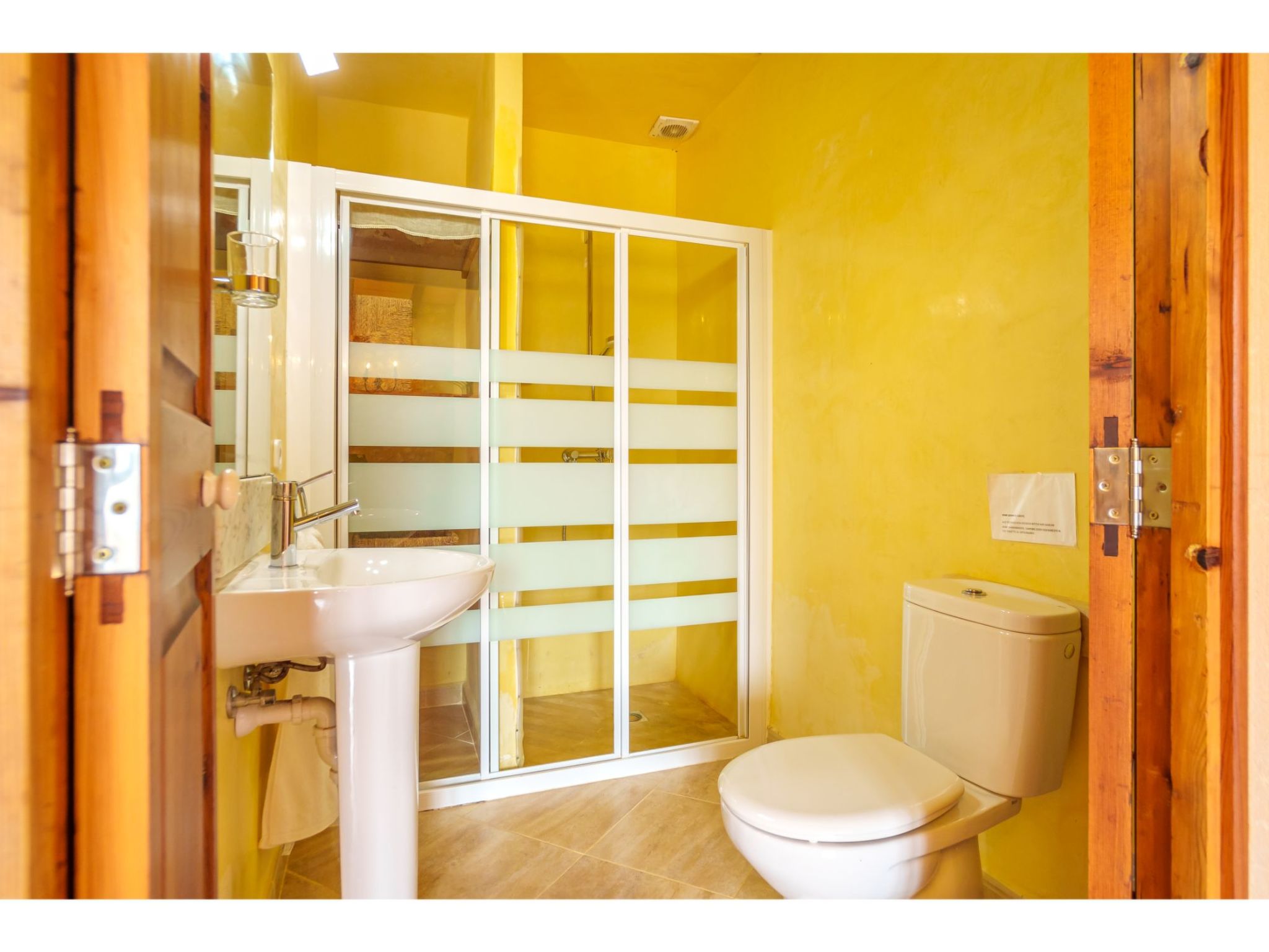 "Los Geranios", 5-room house 150 m2. Object suitable for 6 adults. Comfortable and rustic furnishings: open living/dining room with open-hearth fireplace, dining table, satellite TV, flat screen, air conditioning and forced-air heating. Exit to the patio, to the swimming pool. 1 double bedroom with 1 french bed (180 cm, length 200 cm), air conditioning and forced-air heating. 1 double bedroom with 2 beds (90 cm, length 200 cm), air conditioning and forced-air heating. 1 double bedroom with 2 beds (90 cm, length 190 cm). Open kitchen (3 hot plates, oven, dishwasher, toaster, kettle, microwave, freezer, electric coffee machine). Exit to the patio, to the swimming pool. 2 showers/bidet/WC. Large patio. Terrace furniture, barbecue, deck chairs (4), covered balcony, sitting area. Beautiful view of the swimming pool, the garden, the countryside and the forest. Facilities: washing machine, iron, children's high chair, baby cot for up to 2 year olds, hair dryer. Internet (WiFi, free). Suitable for families. VT1938 // Reg. Nr.: ESFCTU000007008000033908000000000000000000000VT/19386