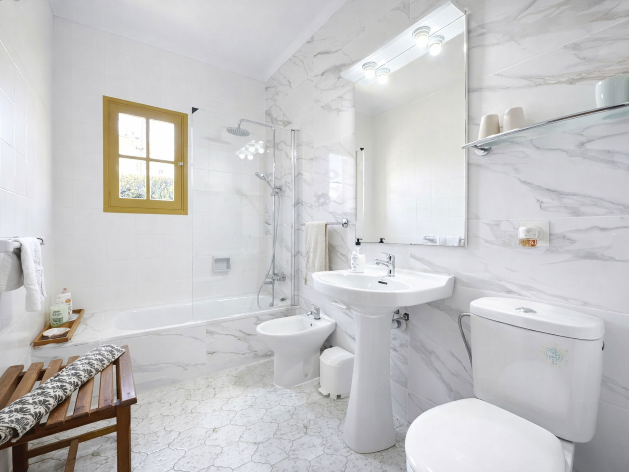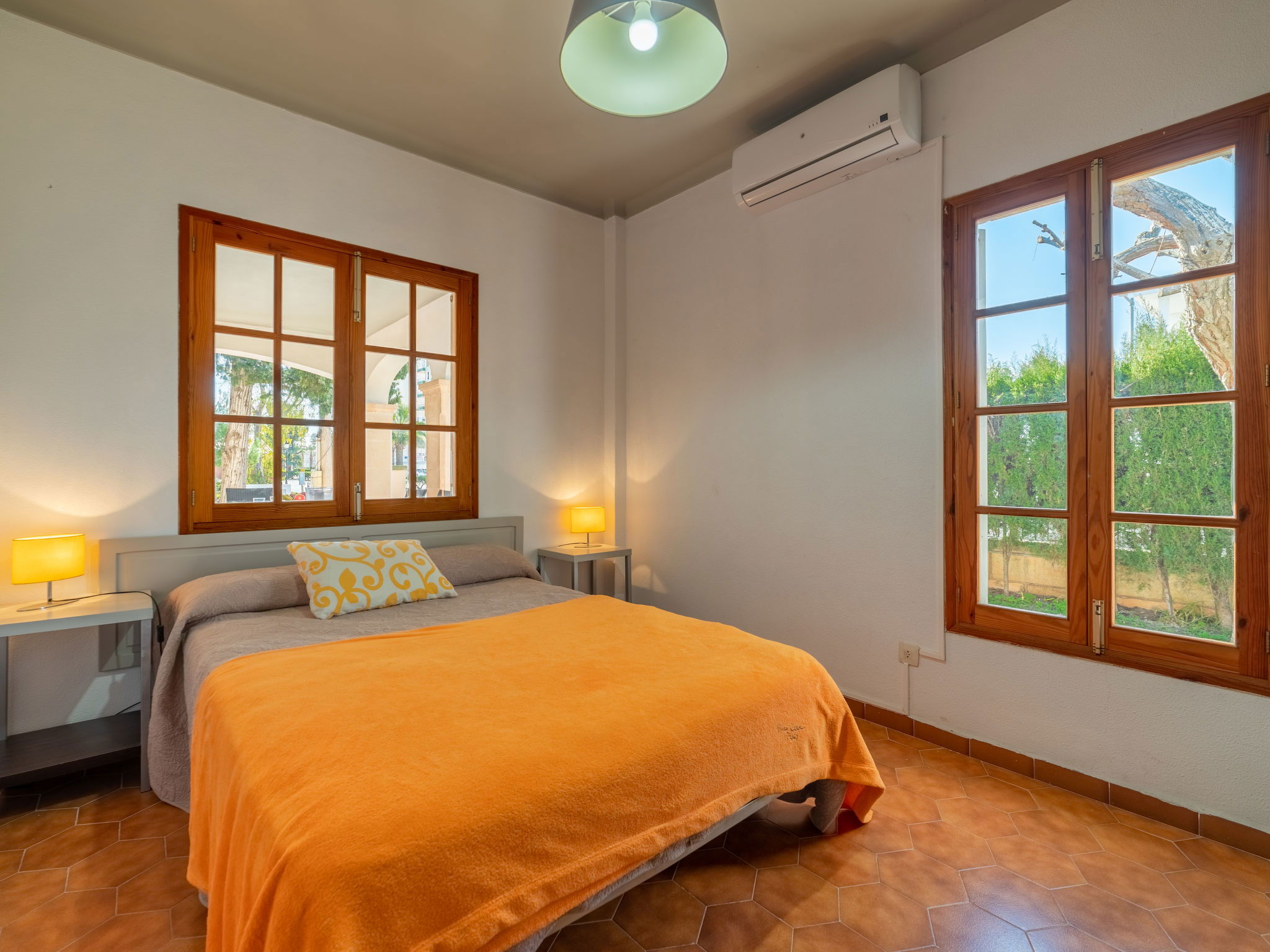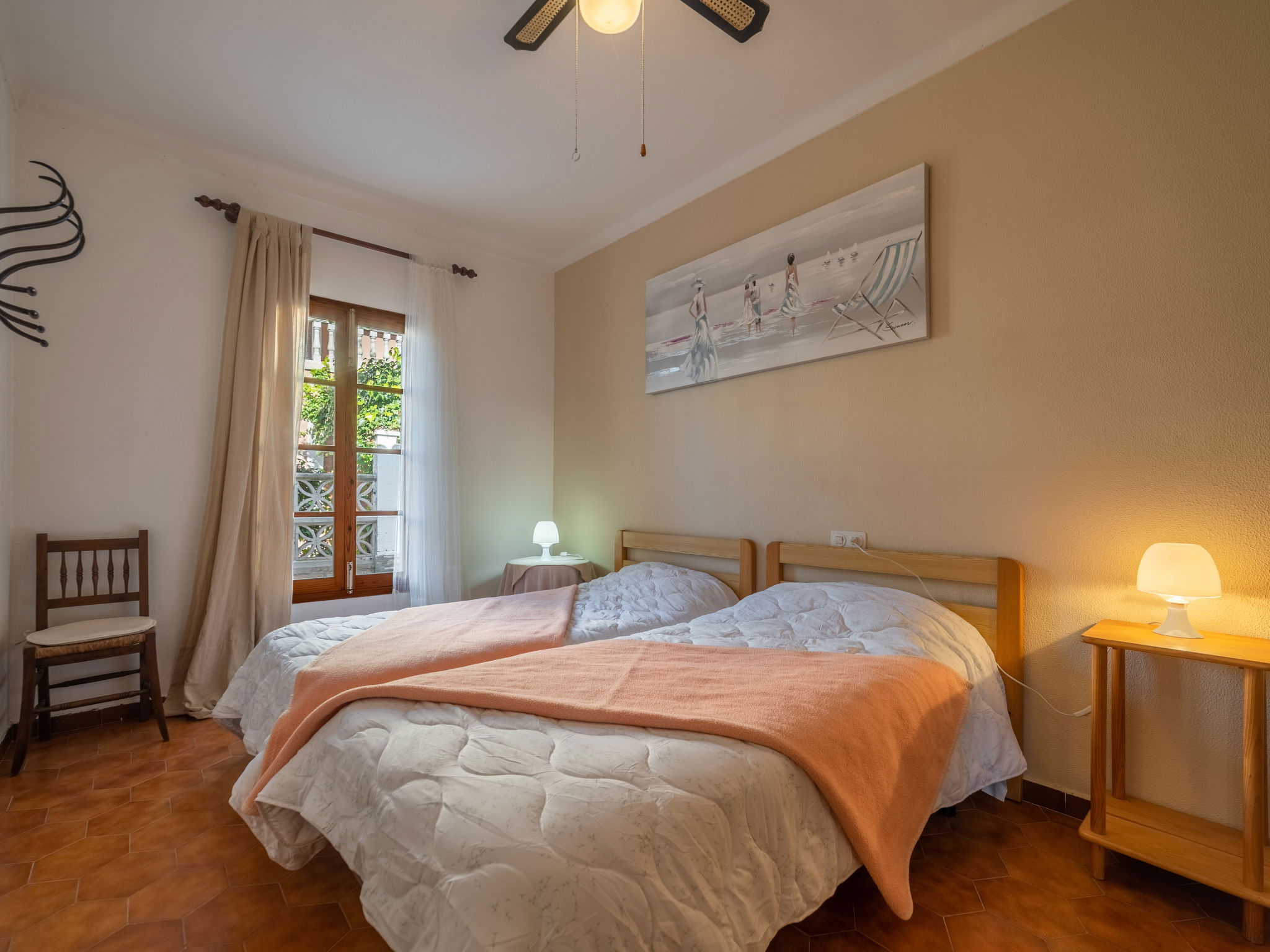 "Can Xiroia", 4-room house 120 m2. Object suitable for 6 adults + 1 child. Spacious and bright, practical and comfortable furnishings: open large living/dining room with dining table, satellite TV, digital TV and flat screen. Exit to the patio. 1 double bedroom with 2 beds (90 cm, length 190 cm), fan. 1 large double bedroom with 1 french bed (135 cm, length 190 cm), air conditioning and forced-air heating. 1 large double bedroom with 1 french bed (150 cm, length 190 cm), air conditioning and forced-air heating. Large kitchen (4 hot plates, oven, dishwasher, toaster, kettle, microwave, freezer) with dining table. Bath/bidet/WC, shower/WC. Large patio. Terrace furniture, barbecue, covered balcony. Of the garden and the resort. Facilities: washing machine, iron, children's high chair, baby cot for up to 2 year olds, hair dryer. Internet (WiFi, free). Please note: suitable for families. Fire extinguisher. ETV3604