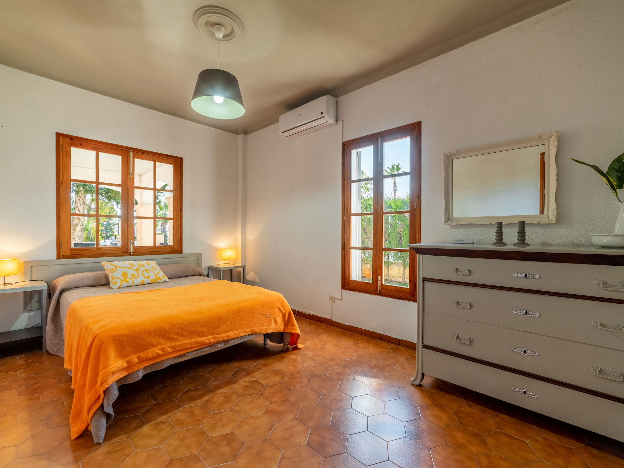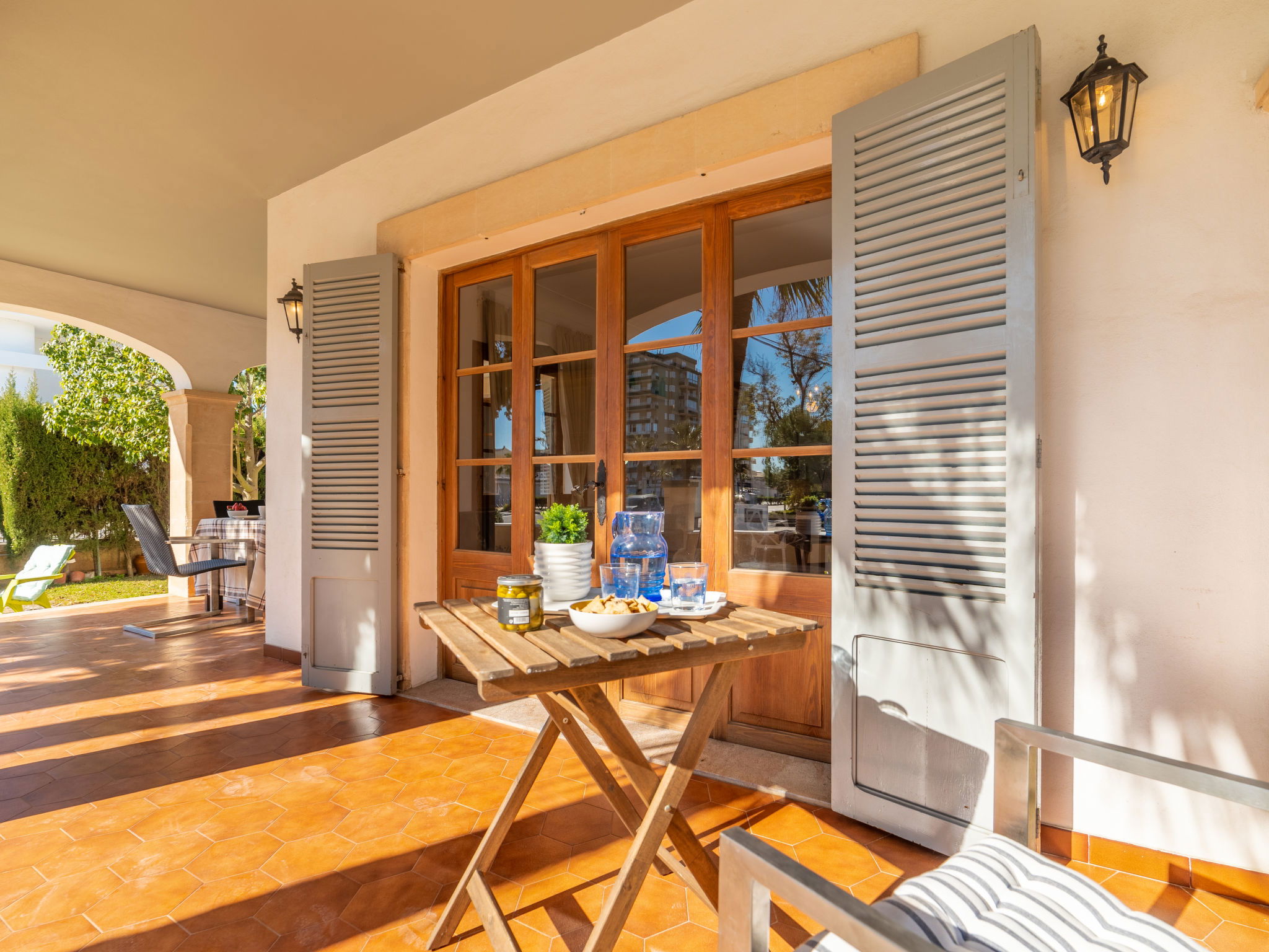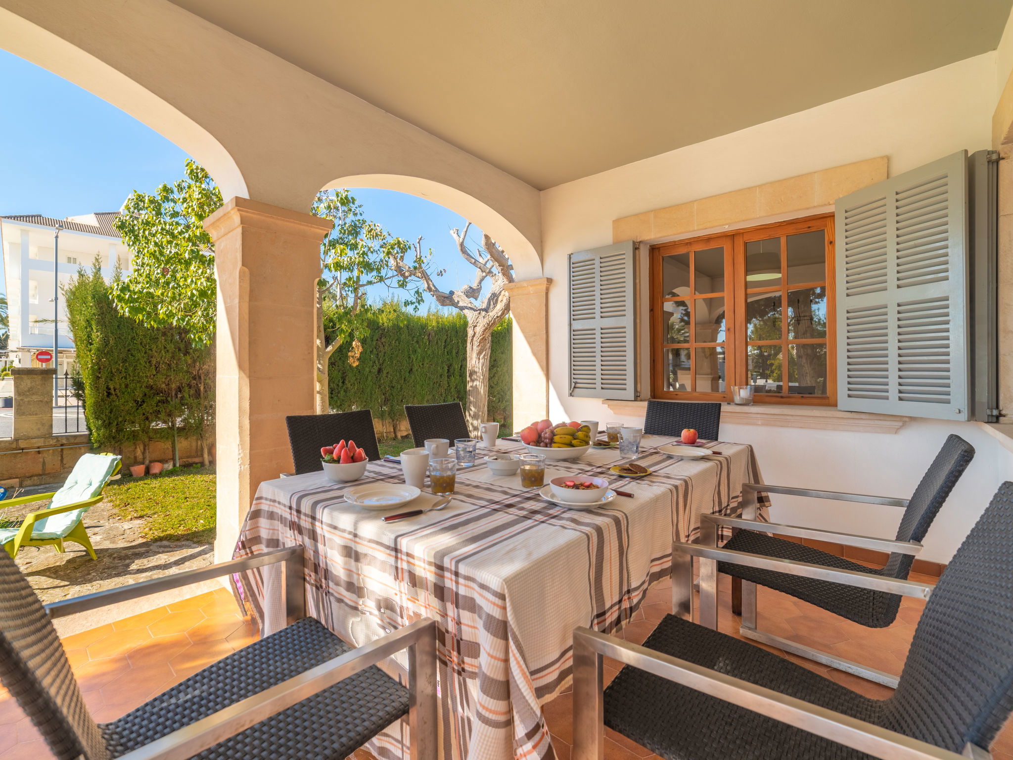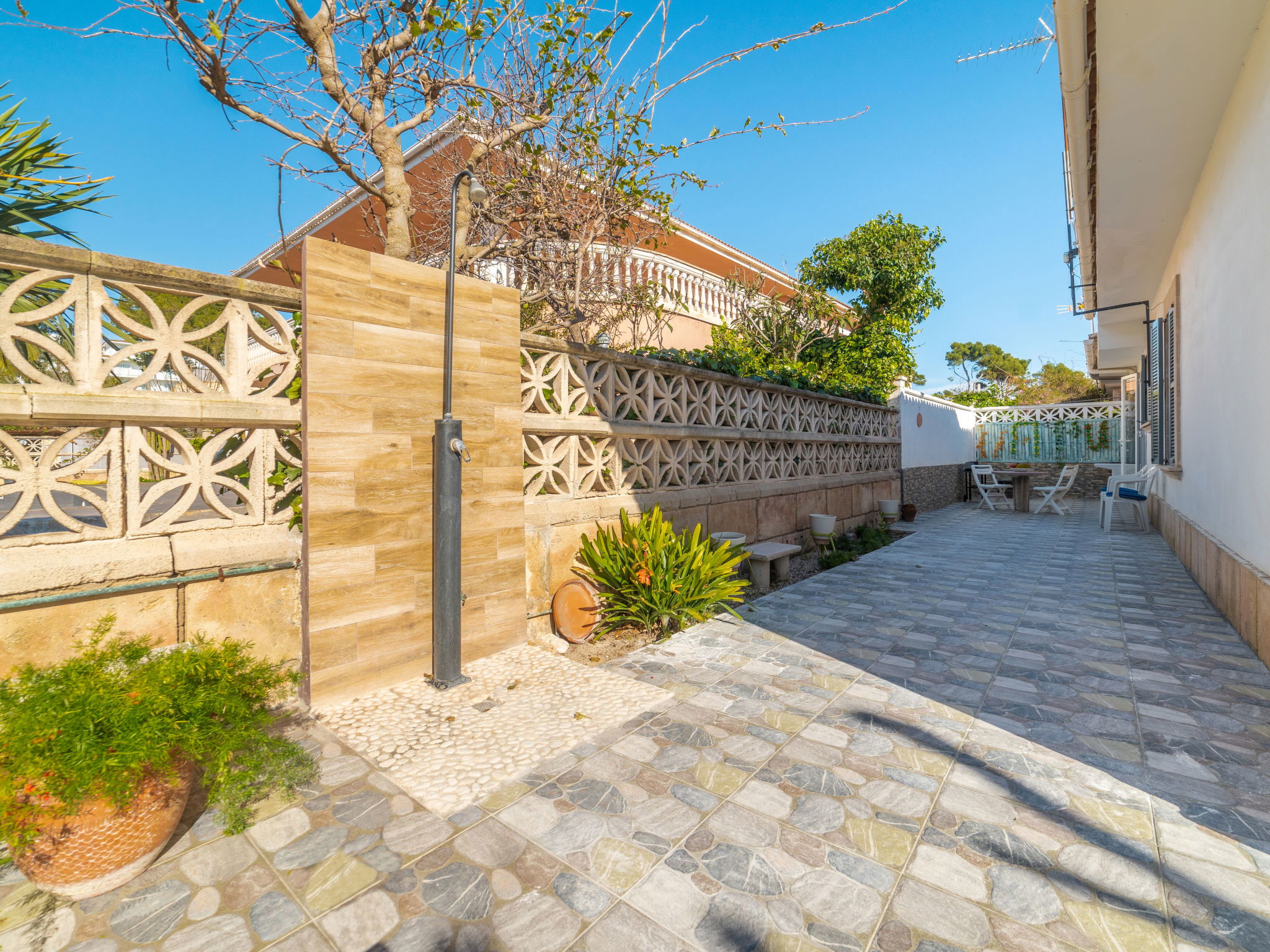 Playas de Muro: Large, cosy single-family house "Can Xiroia". In the resort Playas de Muro, in a busy, sunny position, 50 m from the sea, 50 m from the beach, road to cross. Private: beautiful, well-kept garden. Outdoor shower, patio, arbour, pergola, garden furniture, barbecue. In the house: internet access, WiFi, air conditioning, washing machine. Public car park, public parking on the road. Shop, grocery, restaurant 20 m, bar, pub garden 10 m, sandy beach "Playas de Muro" 50 m. Sports harbour 3 km, marina 3 km, golf course (18 hole) 3 km. Please note: suitable for families, suitable for seniors baby equipment on request (included). Object suitable for 6 adults. The owner does not accept any youth groups. Airfield 60 km from the property.