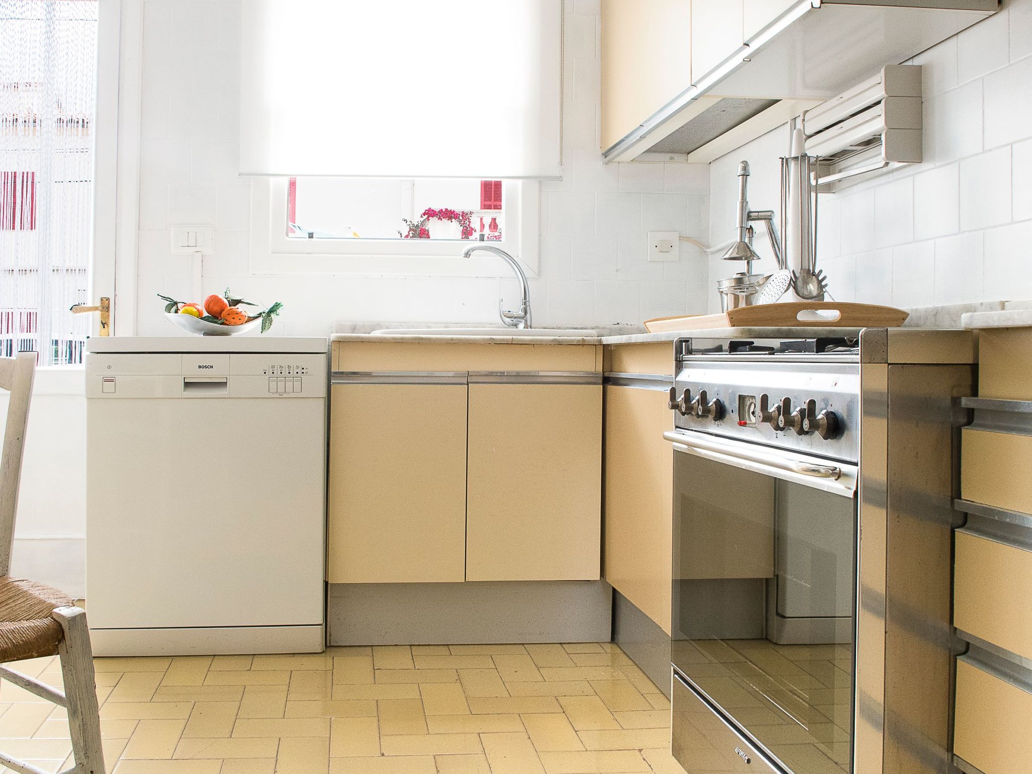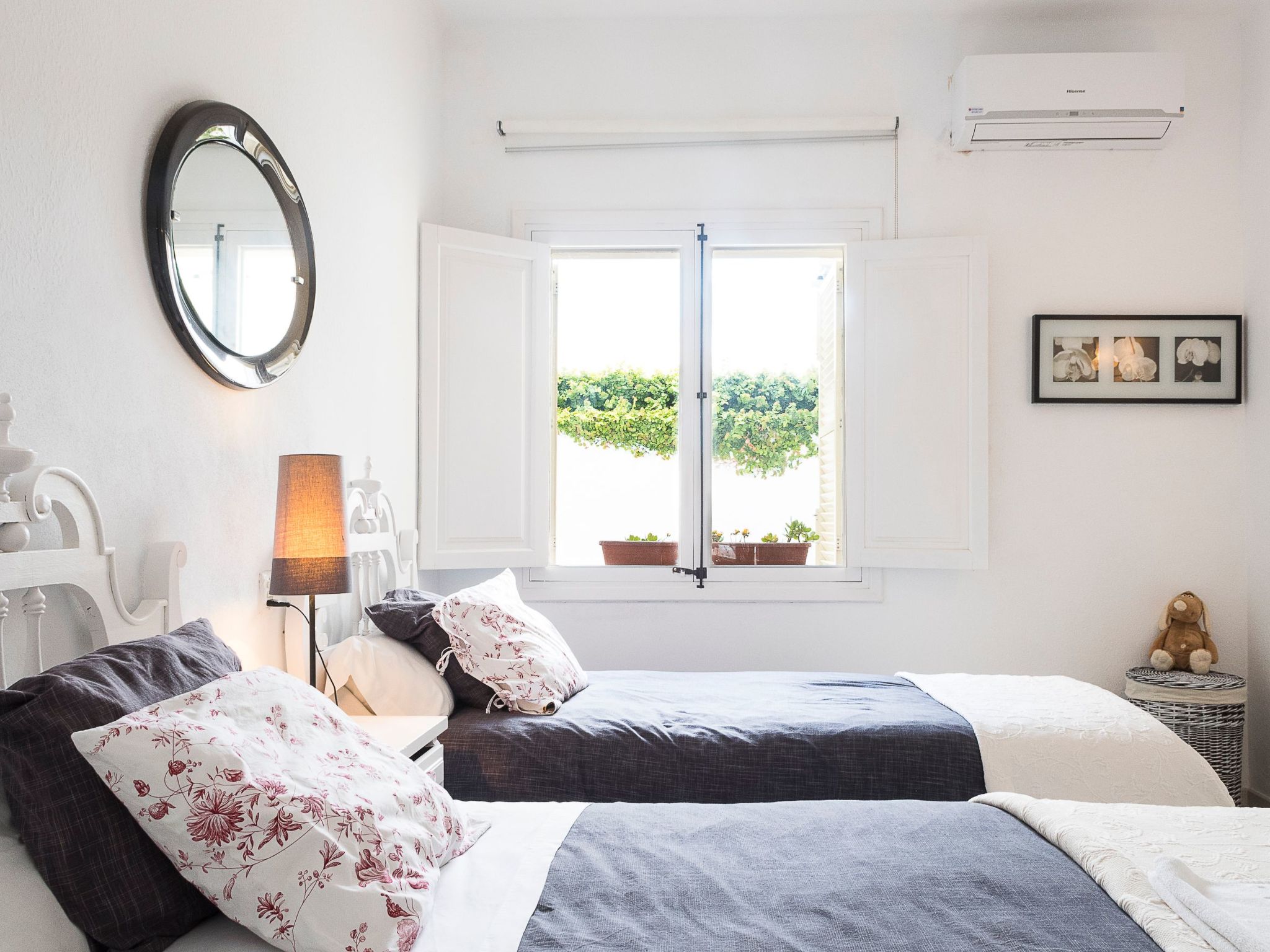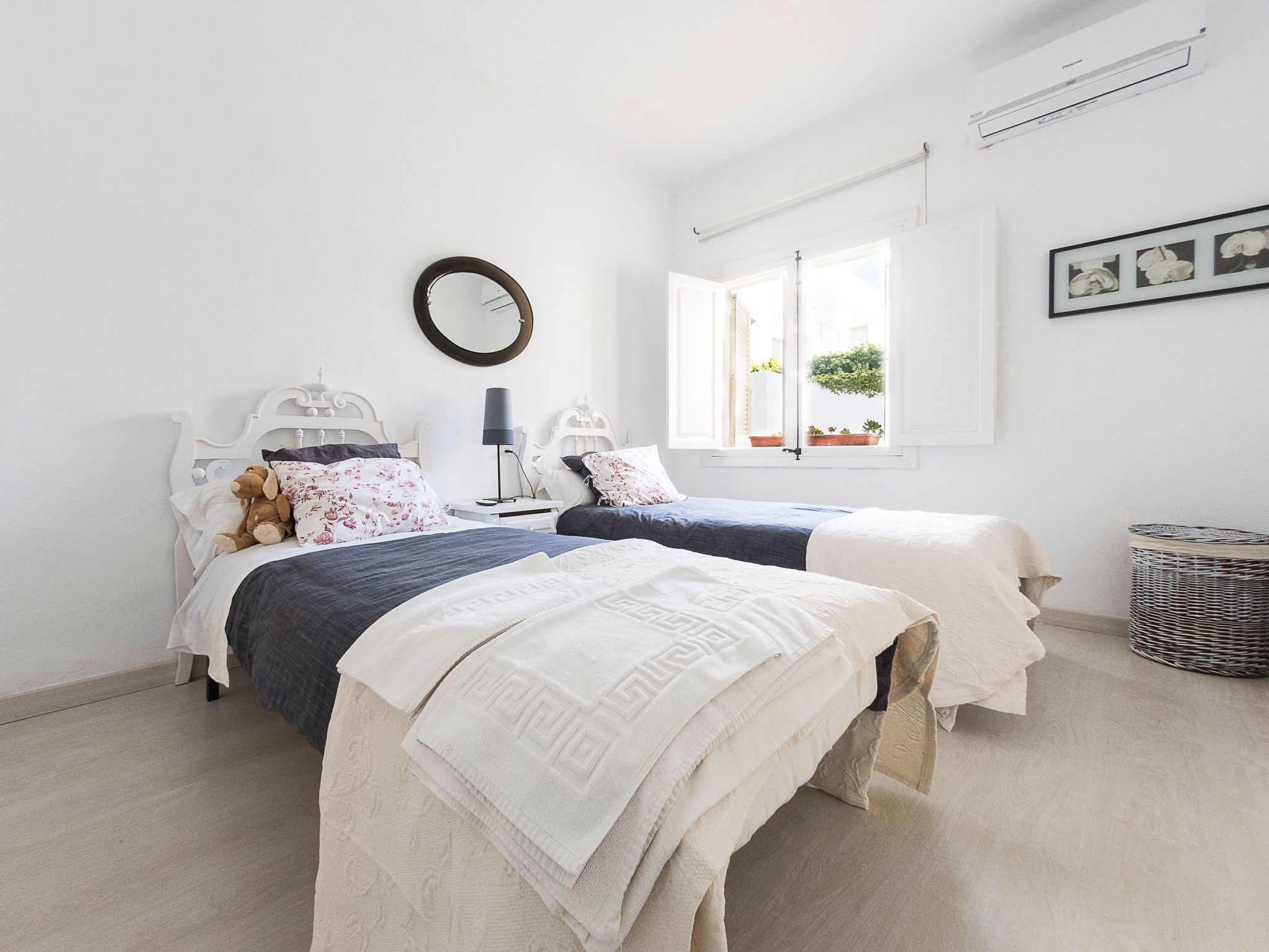 The interior of the holiday home reflects a well thought-out layout to make your stay as comfortable as possible. In addition to efficient air conditioning in parts of the house, amenities include a washing machine for your sole use and a variety of kitchen appliances, including a gas cooker, both a filter and capsule coffee machine, a kettle and a dishwasher, allowing you to feel at home while conjuring up culinary delights. The house has a total of three bedrooms and three bathrooms, spread over two floors, with each floor offering its own character and comfort.