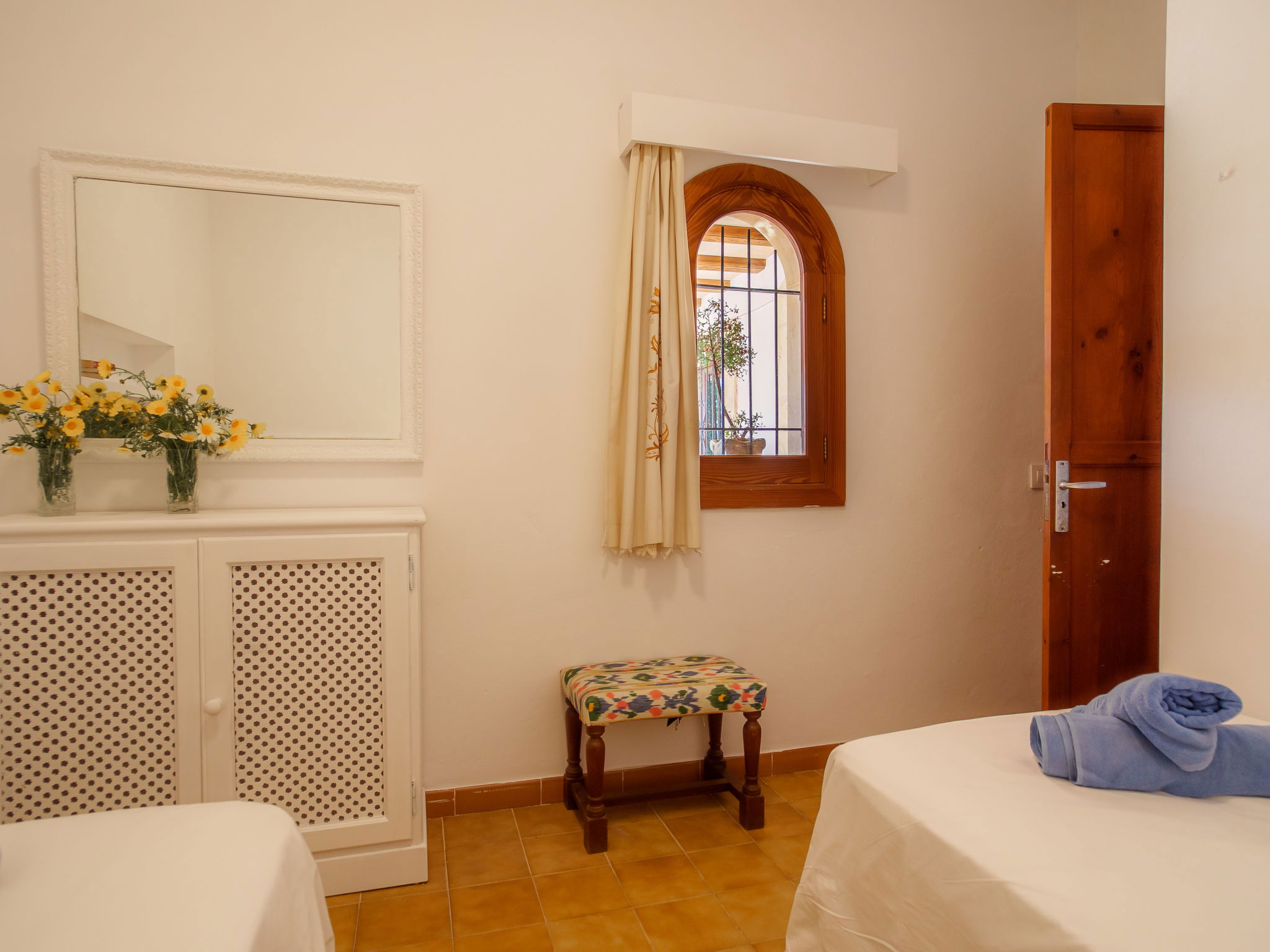 "Sa Marina Portocristo", 5-room villa 240 m2, lower ground floor. Object suitable for 8 adults. Spacious and bright, simple and practical furnishings: large living/dining room with air conditioning and forced-air heating. Exit to the patio. Living room with digital TV and flat screen. 1 double bedroom with 2 beds " 1.3 km, railway station "Manacor" 11 km, sandy beach "Portocristo" 3.2 km. Sports harbour 3.2 km, golf course (18 hole) 15 km, cycle lane 200 m. Nearby attractions: Cuevas del Drach 3.5 km, Manacor City 10 km, Cuevas dels Hams 1.4 km, Palma City 60 km, Rafa Nadal Museum Experience 9.7 km, https://visitmanacor.com/en/nucleos/port. Hiking paths: Serra de Tramuntana, chrome-extension://oemmndcbldboiebfnladd. Please note: car recommended. Suitable for seniors. Object suitable for 8 adults. The owner does not accept any youth groups. Main road close by 50 m from the property. Airfield 56 km from the property. The tap water has no drinking water quality.