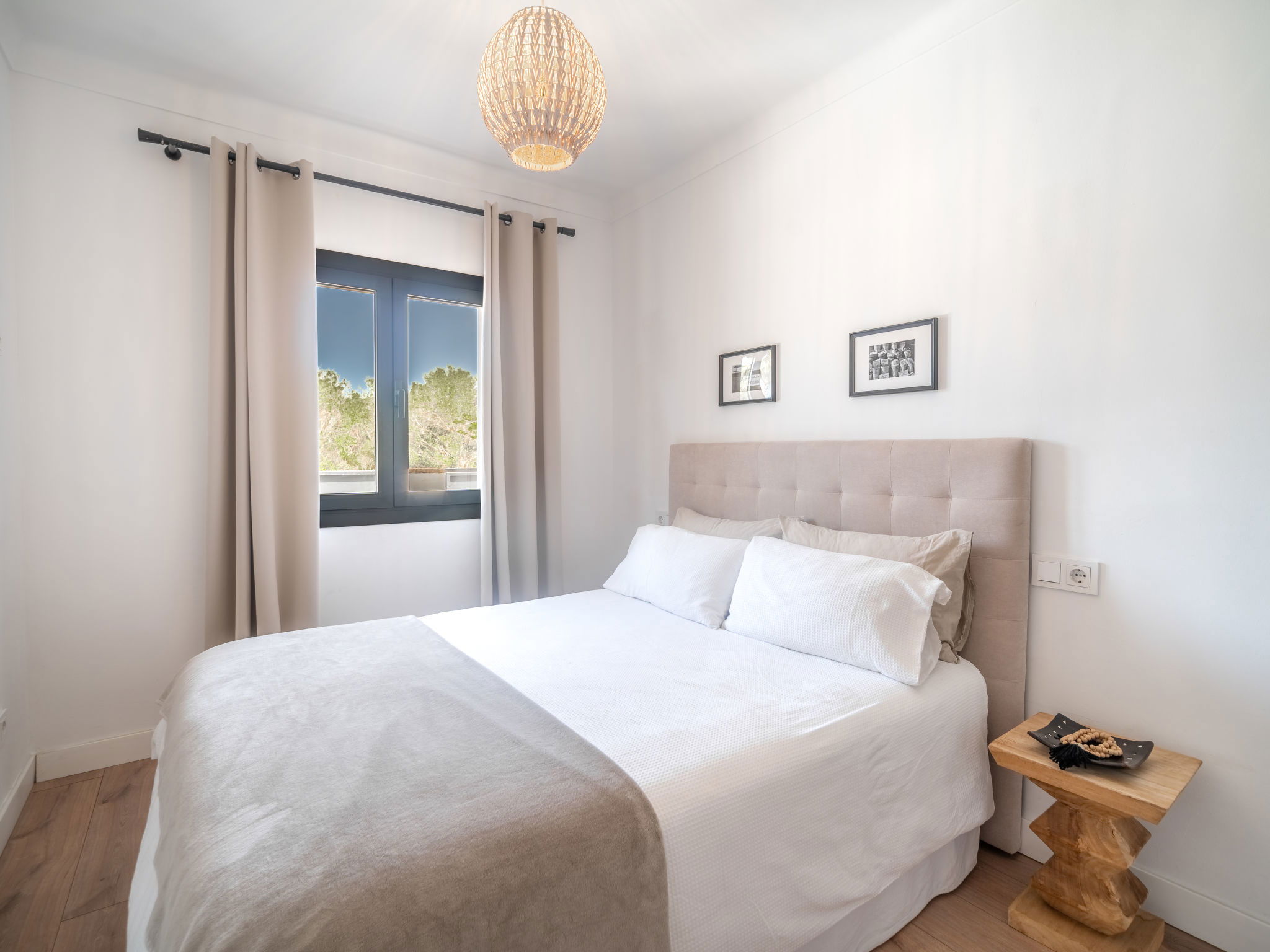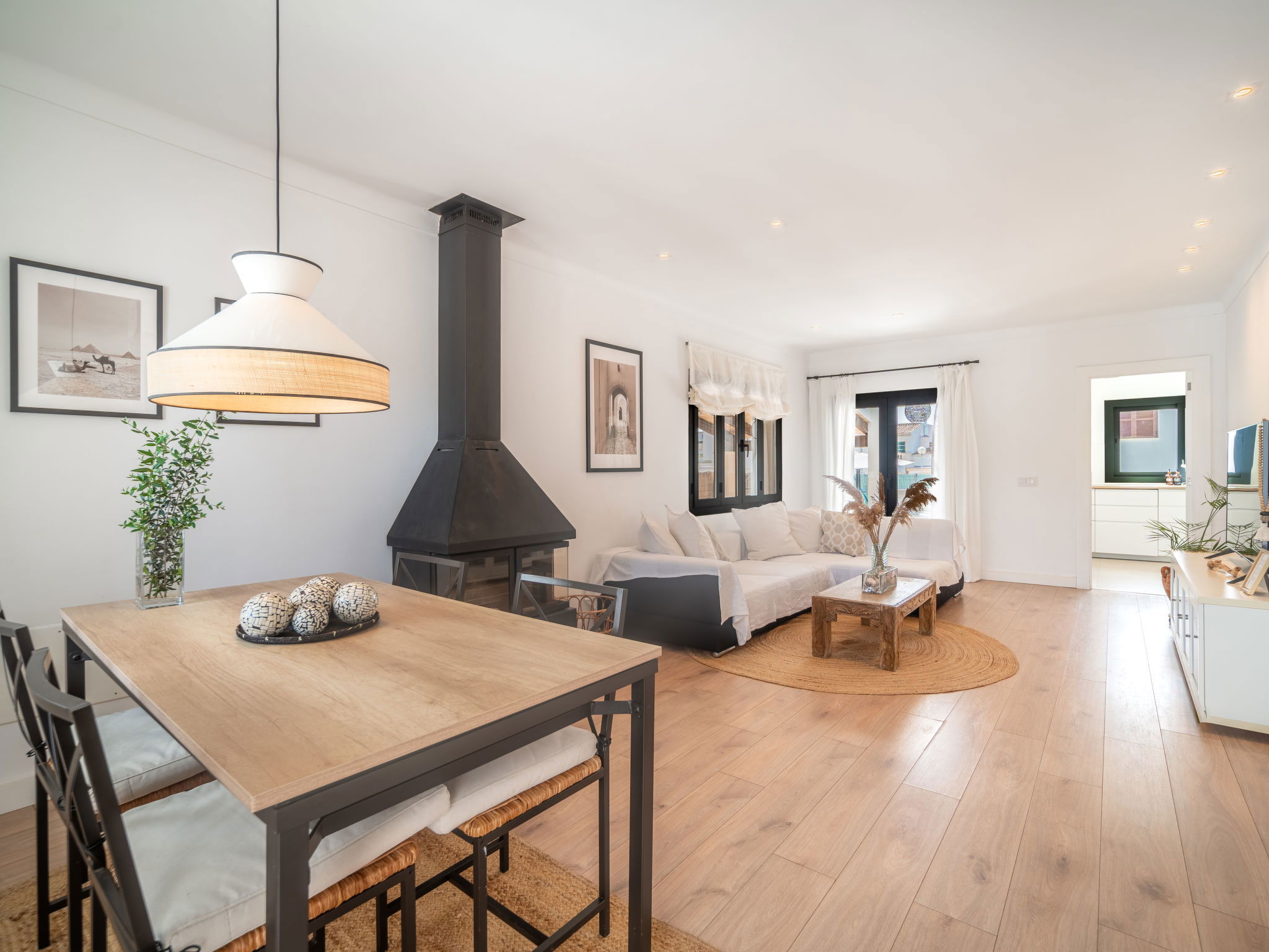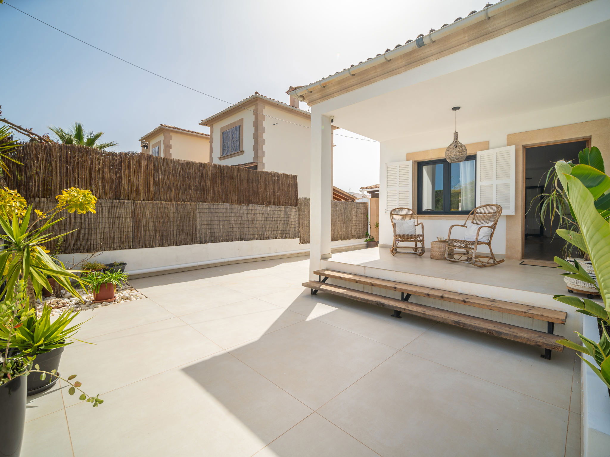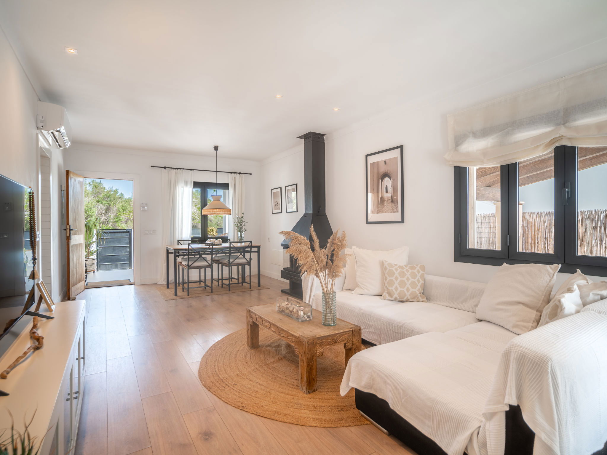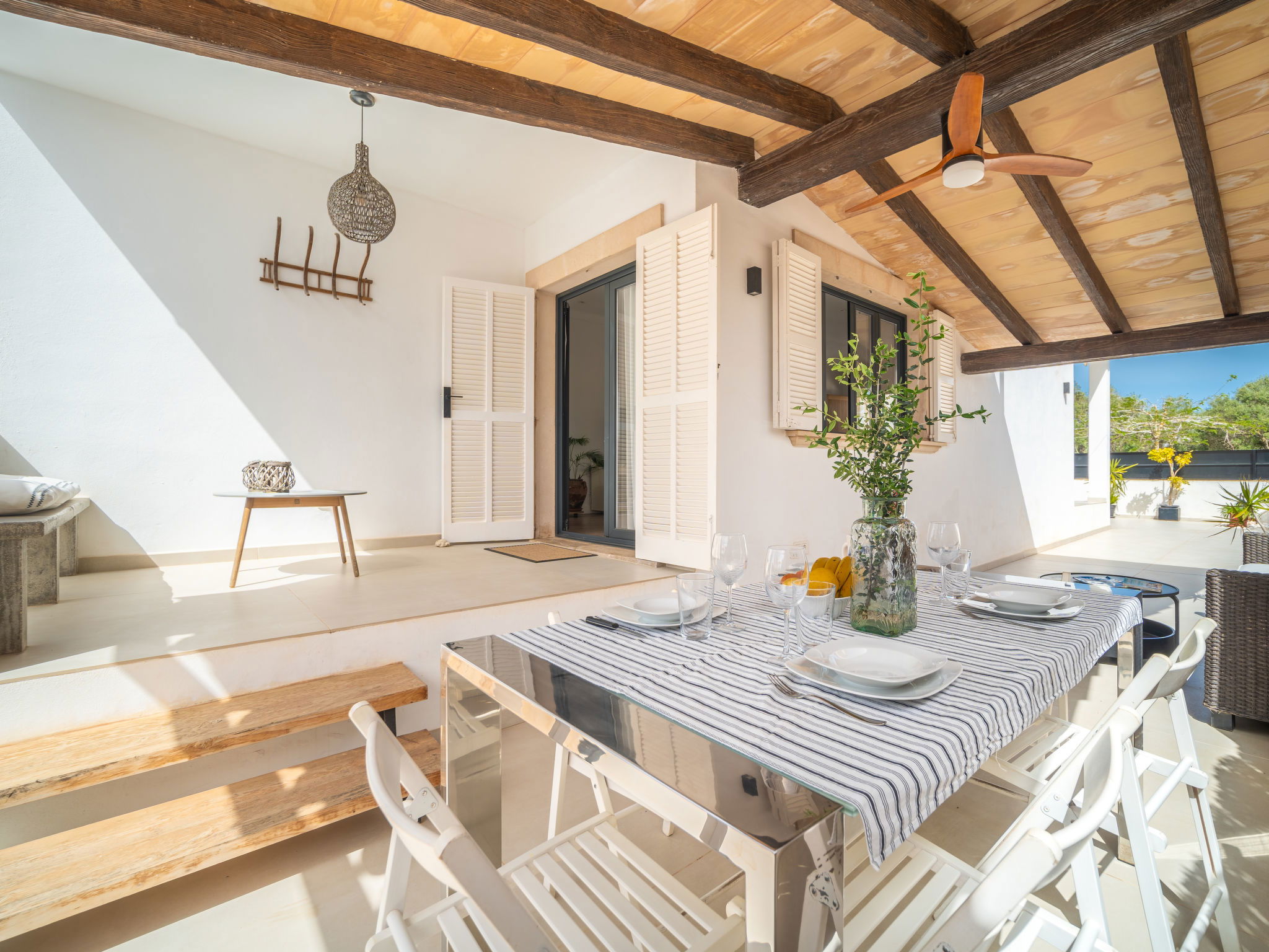 "Copinyes", 5-room house 150 m2. Object suitable for 6 adults. Comfortable and cosy furnishings: living/dining room with open-hearth fireplace (only for decoration), air conditioning and forced-air heating. Exit to the patio. 3 double bedrooms, each room with 1 french bed (1 x 150 cm, length 190 cm), air conditioning and forced-air heating. 1 double bedroom with 2 beds (90 cm, length 190 cm), air conditioning and forced-air heating. Large kitchen (oven, dishwasher, 4 ceramic glass hob hotplates, microwave, electric coffee machine). Exit to the terrace. 2 baths/WC. Natural stone floors. Patio. Terrace furniture, deck chairs, covered balcony. View of the resort. Facilities: washing machine, iron, children's high chair, baby cot for up to 2 year olds, hair dryer. Internet (WiFi, free). Parking at the house. Suitable for families. ETV/8842 // Reg. Nr.: ESFCTU00000701800023409000000000000000000000ETV88424