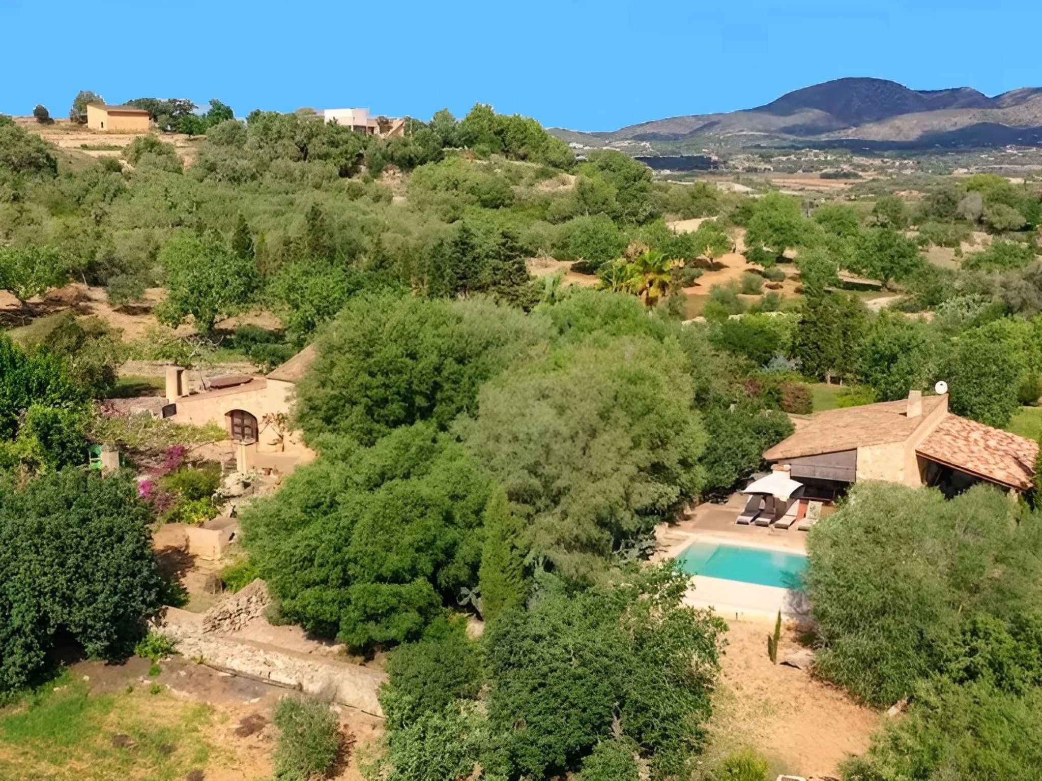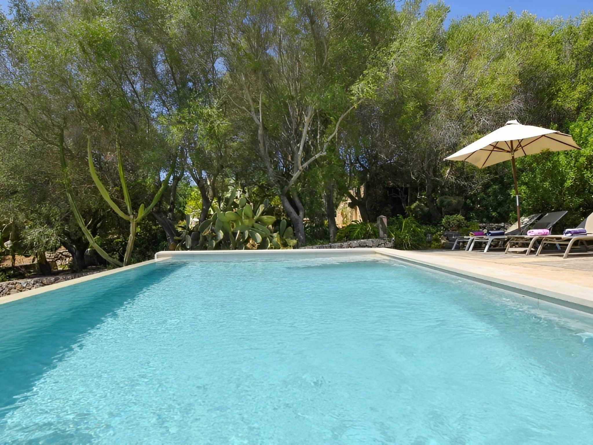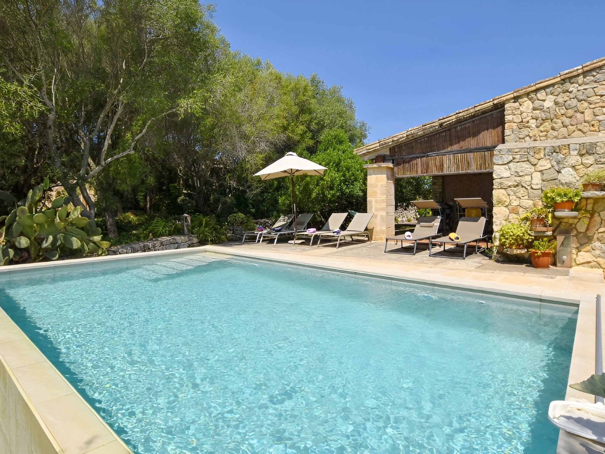 The highlight of this finca is undoubtedly the beautiful and picturesque natural garden. A few metres from the house, passing under the large shady trees, you will find the 7 m x 4 m infinity pool area (depth 0,80 - 1,80 m, salt water). Here, while bathing in the Mediterranean sun, only peace and absolute tranquillity reside.
