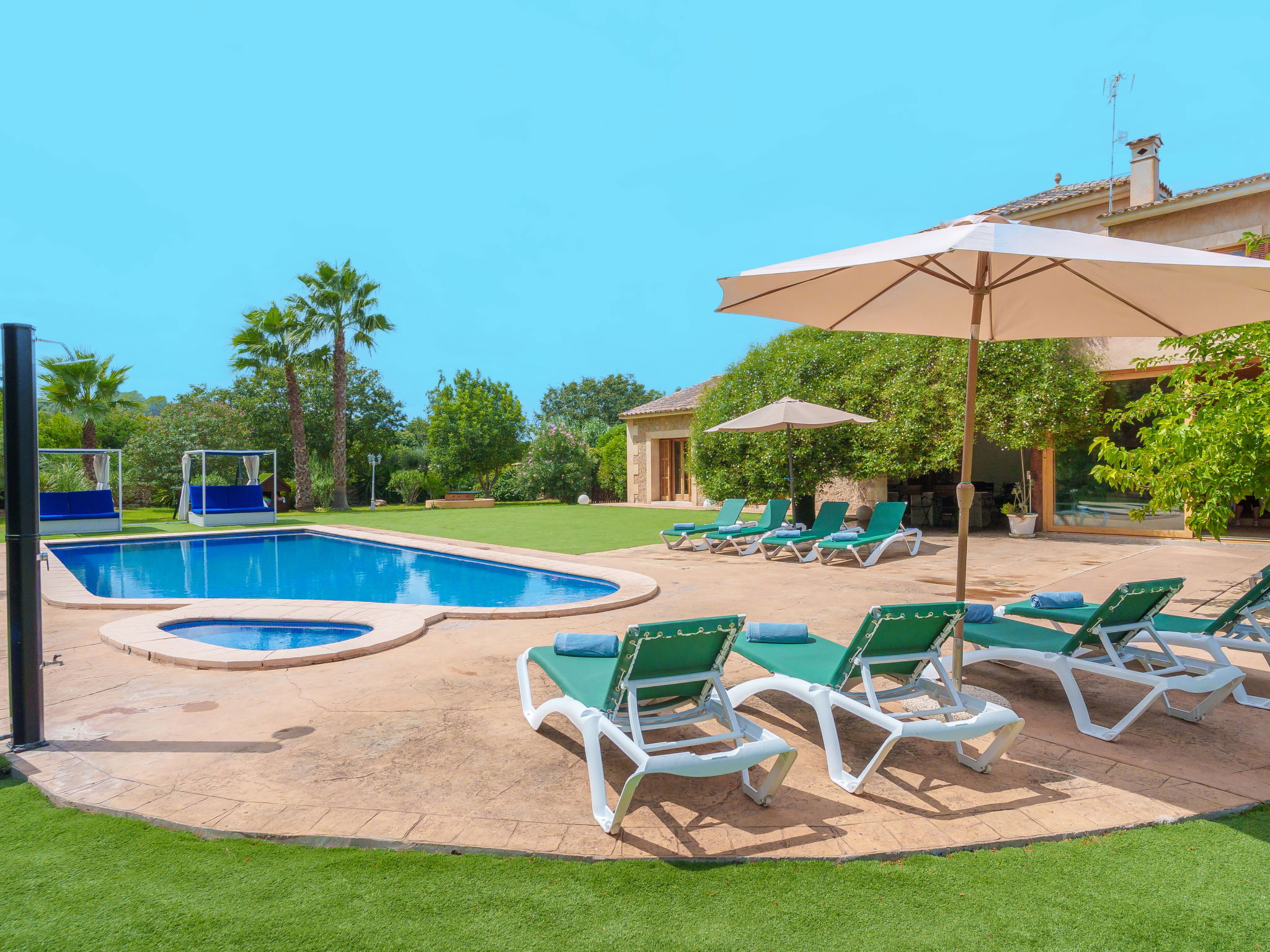 Very large, comfortable villa "La Forca", 2 storeys. Outside the resort, 1 km from the centre of Santa Margalida, in a quiet, sunny position, 11 km from the sea, in the countryside. Private: natural state property 14'000 m2 (fenced), large garden with lawn and trees, swimming pool (12 x 6 m, depth 100 - 180 cm, seasonal availability: 01.Jan. - 31.Dec.). Paddling pool, outdoor shower, table tennis, patio, arbour, pergola, garden furniture, barbecue, barbecue house, pool maintenance by the owner/gardener. In the house: internet access, WiFi, storage room for bicycles, air conditioning. Parking at the house on the premises. Supermarket 1.4 km, restaurant 1.2 km, bar 1.2 km, bakery 1.5 km, 20 minute walk to the centre, bus stop "Plaça de la Vila, Santa Margalid" 1.2 km, railway station "Muro" 8 km, ferry "Port d'Alcúdia" 18.2 km, sandy beach "Can Picafort" 11 km. Sports harbour 11 km, golf course 22 km, cycle lane 500 m. Nearby attractions: Can Picafort-Son Serra-Santa Margarita, Palma de Mallorca 53 km, Hidropark Aquatic Park 20 km, Mallorca Fashion Outlet % Cinemas 45 km. Hiking paths: Finca Pública Son Real, Parc Natural de Farrutx, S'Albufera de Mallorca. Please note: car recommended. Object suitable for 10 adults groups of teenagers on request only. Animals in the neighbourhood. Airfield 57 km from the property.