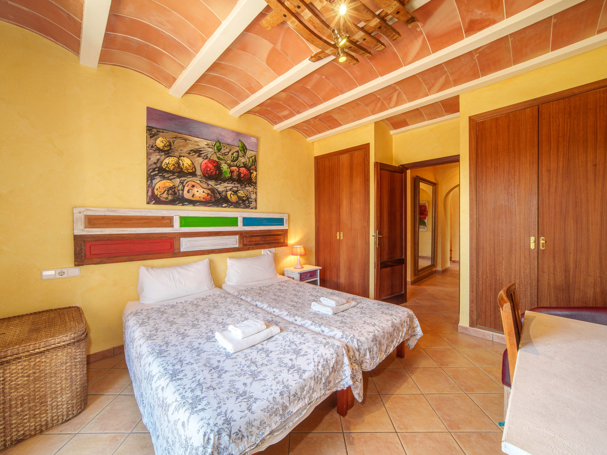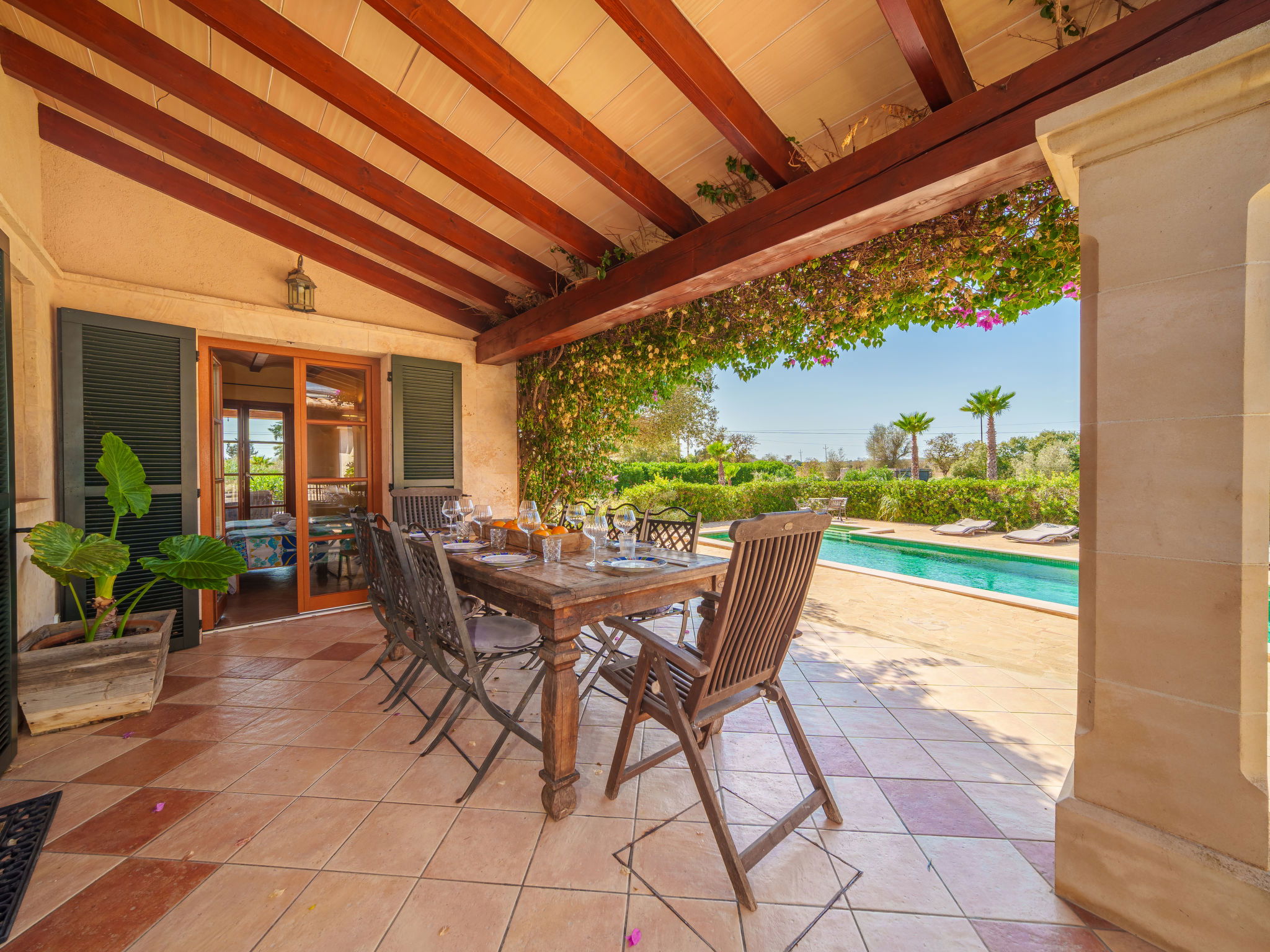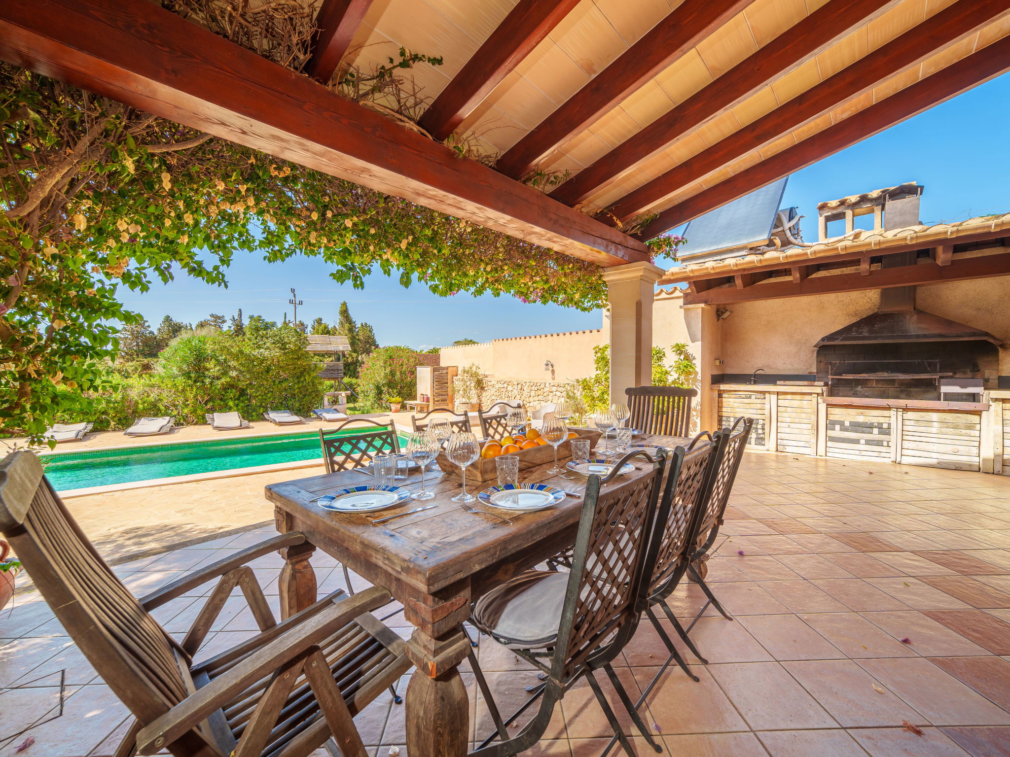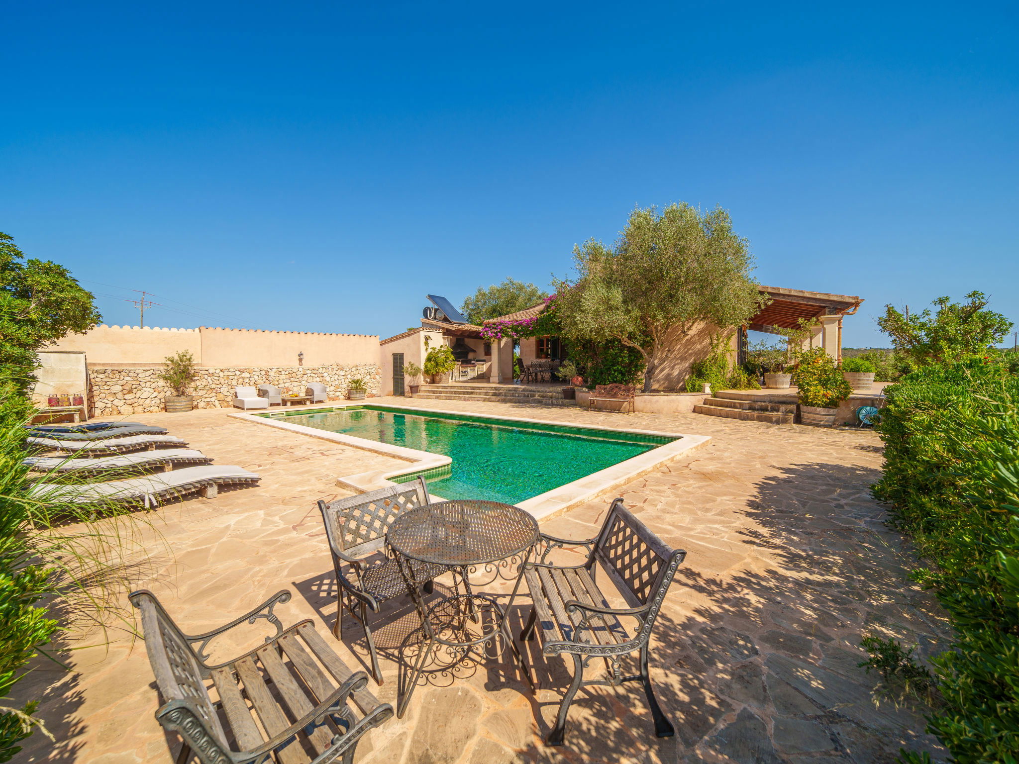 San Blai 3 km from Campos: Large, cosy, comfortable villa "San Blai Llum de Sal", surrounded by trees. 3 km from the edge of the forest, 13 km from the sea, 13 km from the beach. Private: natural garden, swimming pool (8 x 4 m, depth 250 - 250 cm, seasonal availability: 01.Mar. - 31.Oct.). Patio, pergola, garden furniture, barbecue, pool maintenance by the owner/gardener. In the house: WiFi, washing machine, heating to be paid on the spot (01.Nov. - 31.Mar.). Roofed, parking. Shop 3 km, grocery 3 km, supermarket 3 km, shopping centre 3 km, restaurant 3 km, bar 3 km, bakery 3 km, café 3 km, pedestrian zone 3 km, bus stop "Campos" 3 km, railway station "Manacor" 27 km, sandy beach "Sa Rápita" 13 km. Sports harbour 13 km, marina 13 km, golf course (18 hole) 20 km, sailing school 13 km. Nearby attractions: Platja d’es Trenc 13 km, Sa Plasa de Campos 3 km, Santanyi 10 km. Please note: car recommended. Baby equipment on request (included). The owner does not accept any youth groups. Loading and unloading of baggage is possible at the holiday house. Airfield 30 km from the property.