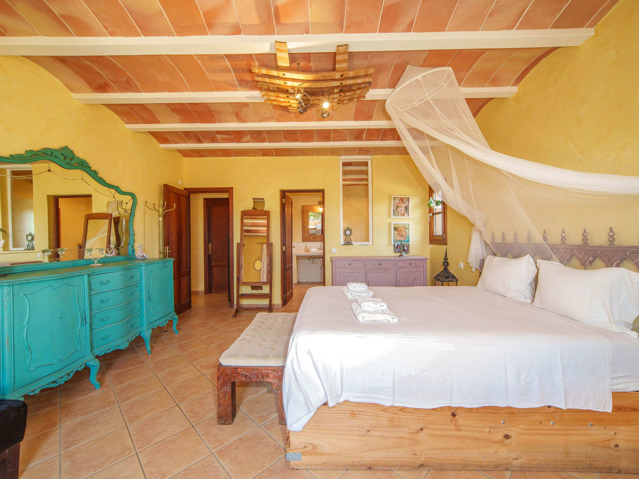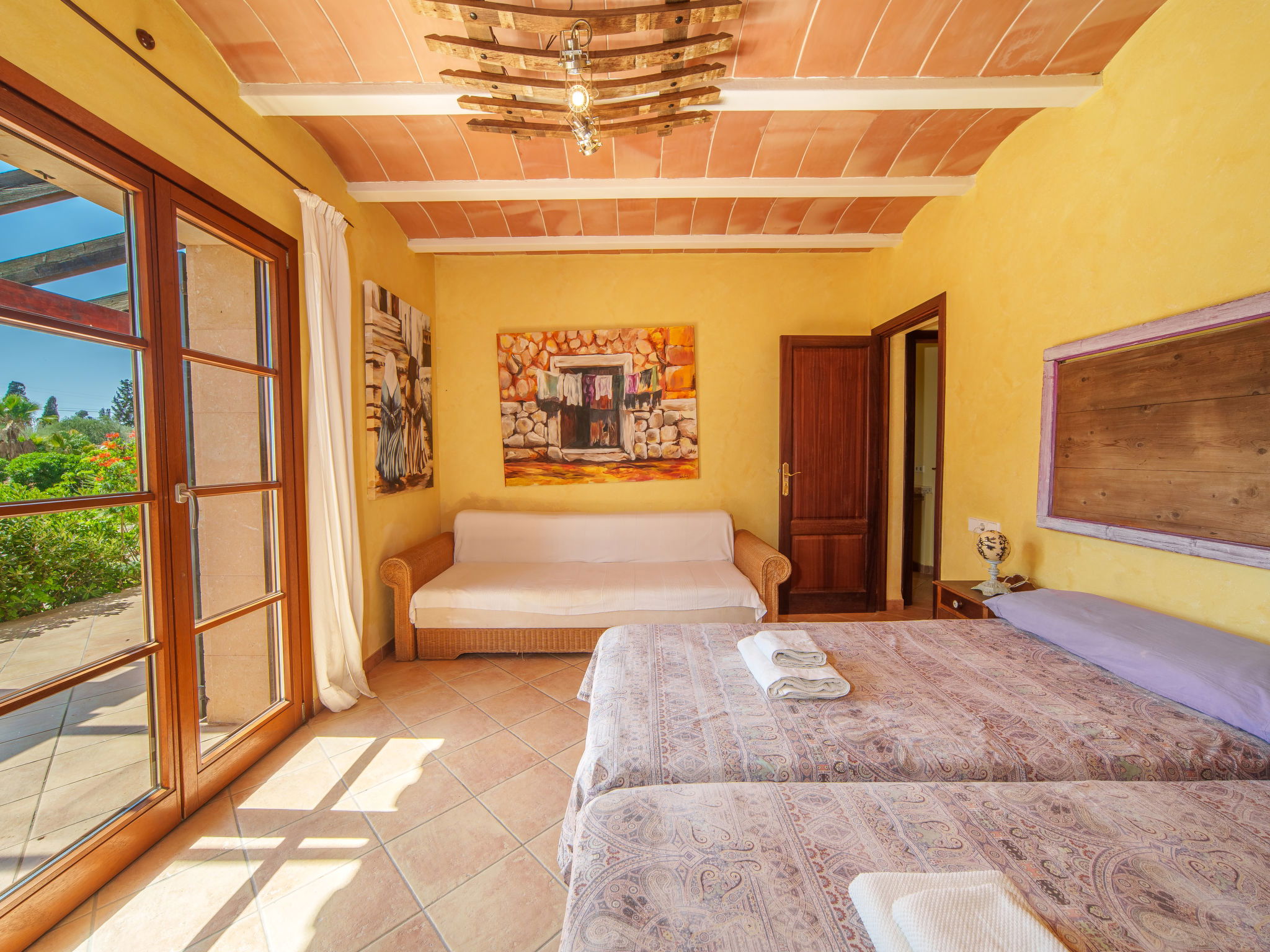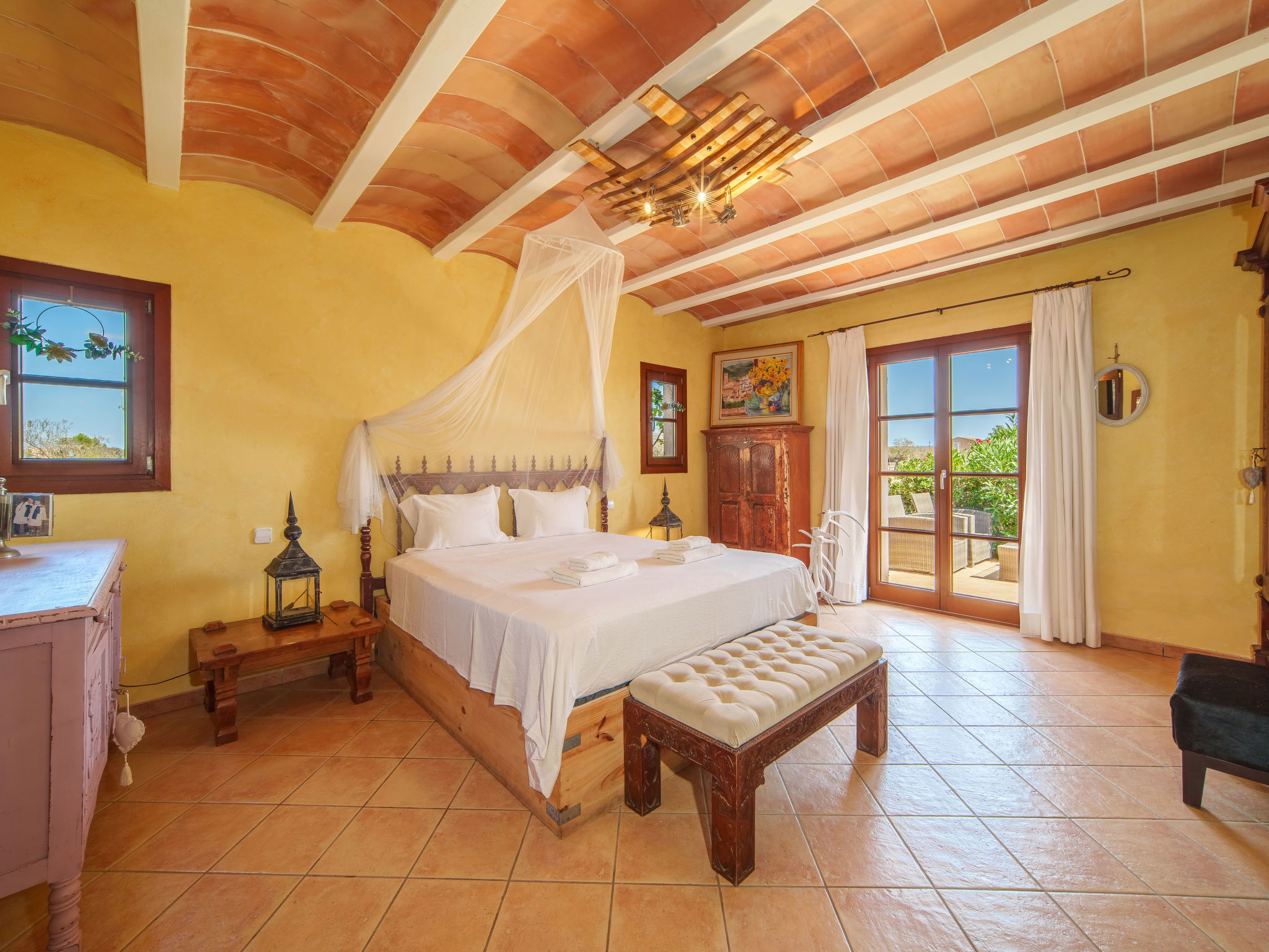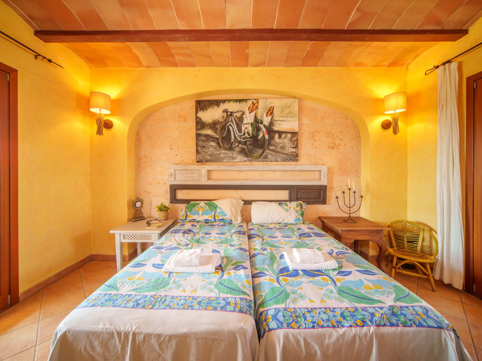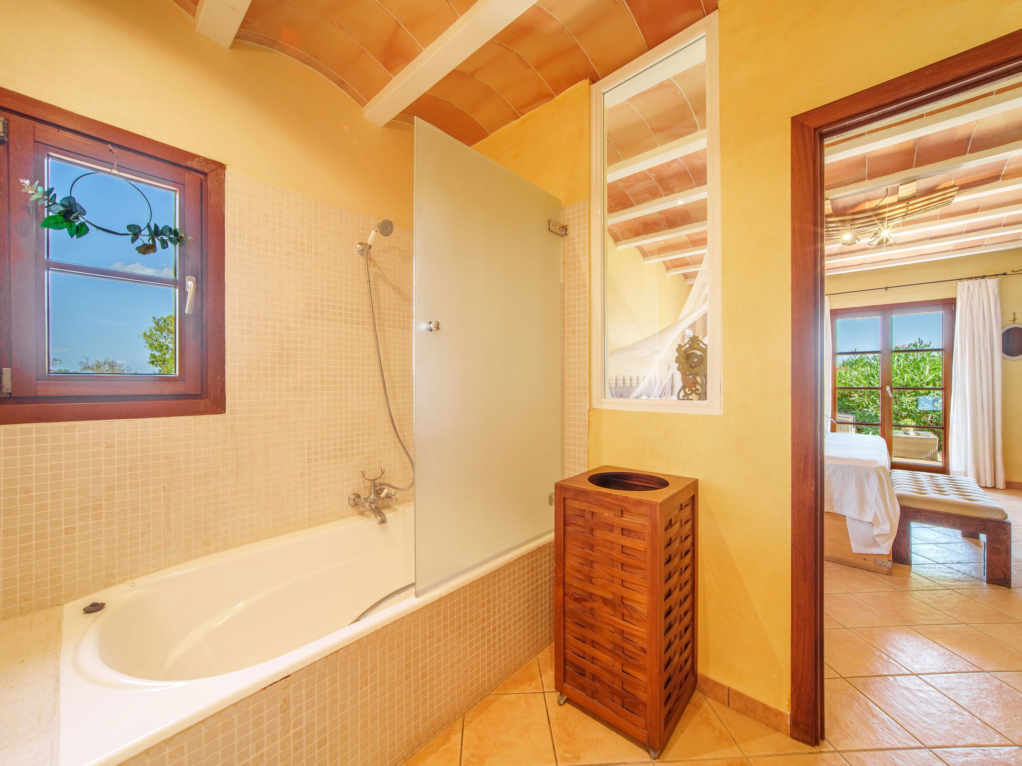 San Blai 3 km from Campos: Large, cosy, comfortable villa "San Blai Llum de Sal", surrounded by trees. 3 km from the edge of the forest, 13 km from the sea, 13 km from the beach. Private: natural garden, swimming pool (8 x 4 m, depth 250 - 250 cm, seasonal availability: 01.Mar. - 31.Oct.). Patio, pergola, garden furniture, barbecue, pool maintenance by the owner/gardener. In the house: WiFi, washing machine, heating to be paid on the spot (01.Nov. - 31.Mar.). Roofed, parking. Shop 3 km, grocery 3 km, supermarket 3 km, shopping centre 3 km, restaurant 3 km, bar 3 km, bakery 3 km, café 3 km, pedestrian zone 3 km, bus stop "Campos" 3 km, railway station "Manacor" 27 km, sandy beach "Sa Rápita" 13 km. Sports harbour 13 km, marina 13 km, golf course (18 hole) 20 km, sailing school 13 km. Nearby attractions: Platja d’es Trenc 13 km, Sa Plasa de Campos 3 km, Santanyi 10 km. Please note: car recommended. Baby equipment on request (included). The owner does not accept any youth groups. Loading and unloading of baggage is possible at the holiday house. Airfield 30 km from the property.