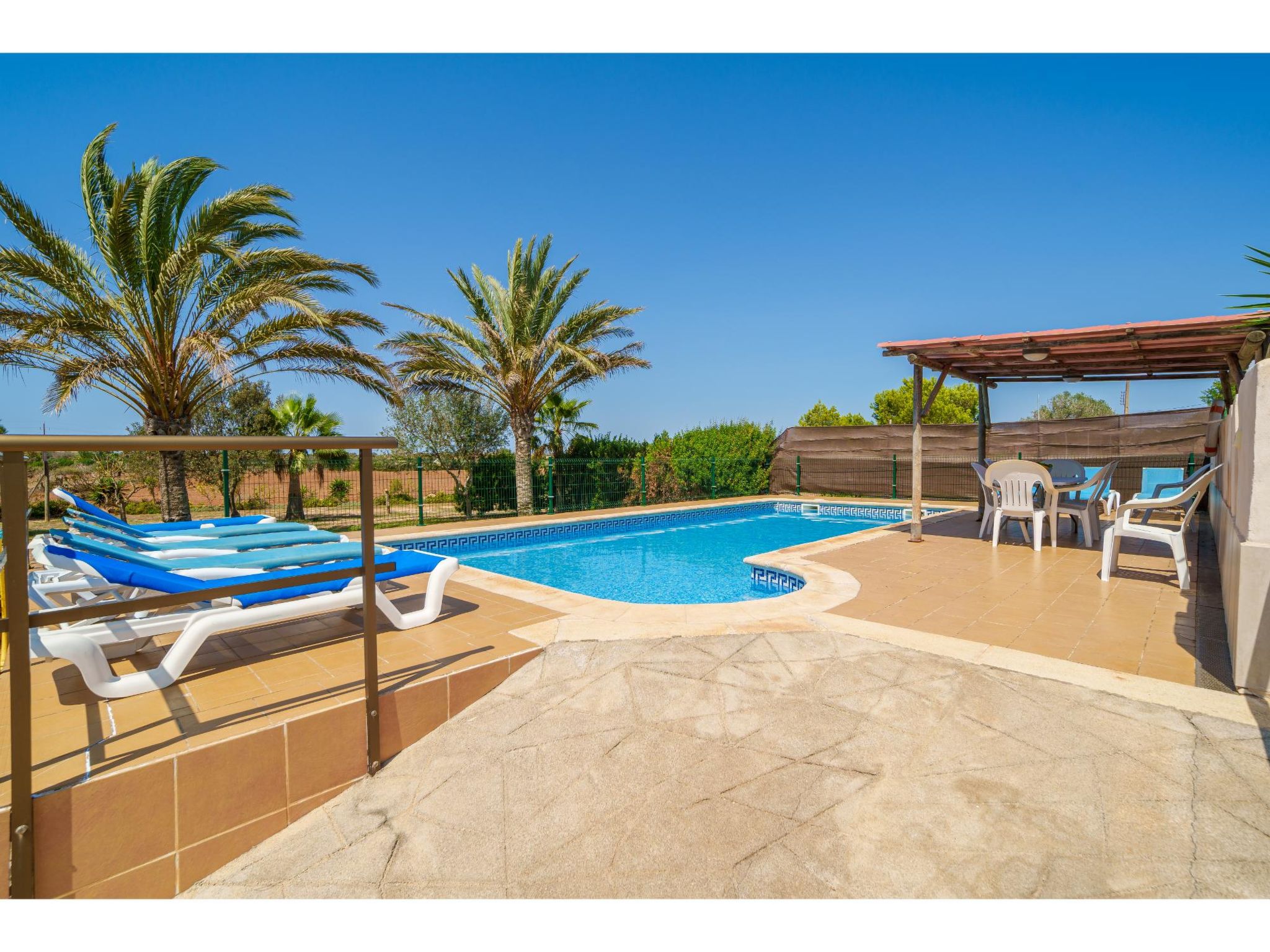 Sa Ràpita 12 km from Campos: Large, rustic, simple house "Cas Forner", surrounded by trees. Property composed of main house and outbuilding, 200 m from the edge of the forest, 1 km from the sea, 1.5 km from the beach, in the countryside. Private: property, garden, swimming pool angular (3 x 6 m, depth 150 cm, seasonal availability: 01.Mar. - 31.Oct.). Table tennis, volleyball, patio, pergola, garden furniture, barbecue, pool maintenance by the owner/gardener. In the house: WiFi, air conditioning, washing machine. Parking at the house. Shop 1.5 km, grocery 1.5 km, supermarket 1.5 km, shopping centre 12 km, restaurant 1.5 km, bar 1.5 km, bakery 1.5 km, café 1.5 km, pedestrian zone 400 m, bus stop "Sa Ràpita" 2.5 km, railway station "Manacor" 40 km, sandy beach "Ses Covetes" 1.5 km. Sports harbour 1 km, marina 1 km, golf course (18 hole) 20 km, sailing school 1.5 km, cycle lane 400 m. Nearby attractions: Ses Covetes 1.5 km, Sa ràpita 1 km, Campos 12 km, La cueva azul 2 km, Isla de Cabrera 2 km, El mercado 1.5 km. Please note: car recommended. Baby equipment. Object suitable for 8 adults. The owner does not accept any youth groups. Loading and unloading of baggage is possible at the holiday house. The owner lives on the same property. Motorway 20 km from the property. Airfield 40 km from the property.