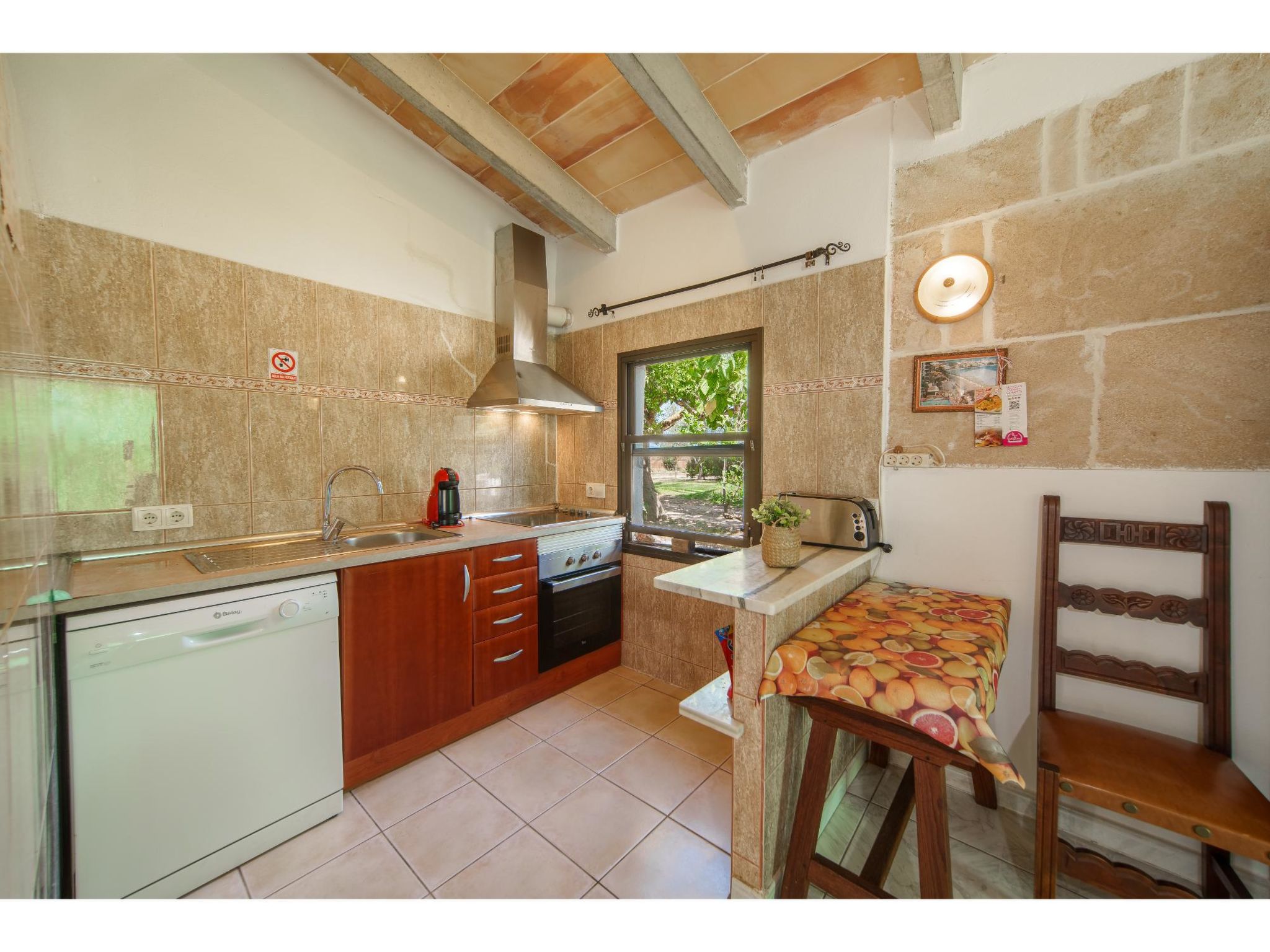 "Cas Forner", 5-room apartment 160 m2. Object suitable for 8 adults. Spacious, simple and cosy furnishings: 2 rooms, each room with 2 beds (90 cm, length 200 cm), air conditioning and forced-air heating. 2 rooms, each room with 1 french bed (1 x 150 cm, length 200 cm), air conditioning and forced-air heating. Large living room with TV, air conditioning and forced-air heating. Exit to the patio. Kitchen (dishwasher, 4 ceramic glass hob hotplates, toaster, kettle, microwave, electric coffee machine) with bathroom and air conditioning. Exit to the garden. Bath/WC, shower/WC. Air-conditioning, forced-air heating. Natural stone floors. Patio. Terrace furniture, barbecue, deck chairs (6), covered balcony. Beautiful panoramic view of the countryside. Facilities: washing machine, iron, children's high chair, baby cot for up to 2 year olds, hair dryer. Internet (WiFi, free). Parking at the house. Please note: one double bedroom is outside the apartment. The pool mentioned in the description is for private use. VT/1865