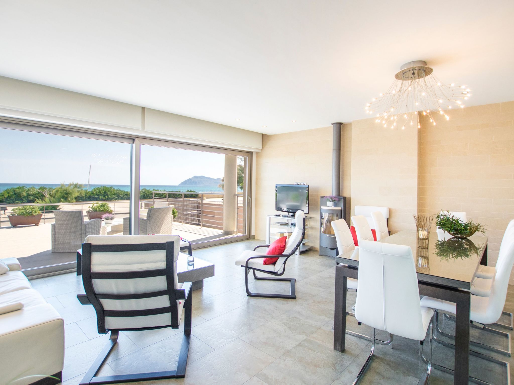 Discover the magnificence of staying in this spectacular villa, where every corner has been designed to offer you a unique experience, immersing you in an atmosphere where the view of the sea constantly accompanies you. The sensation of sailing without leaving the place becomes a reality here, thanks to its impressive windows that frame the blue of the ocean. In addition, for your convenience and connection, the entire property is equipped with wireless ADSL Internet.