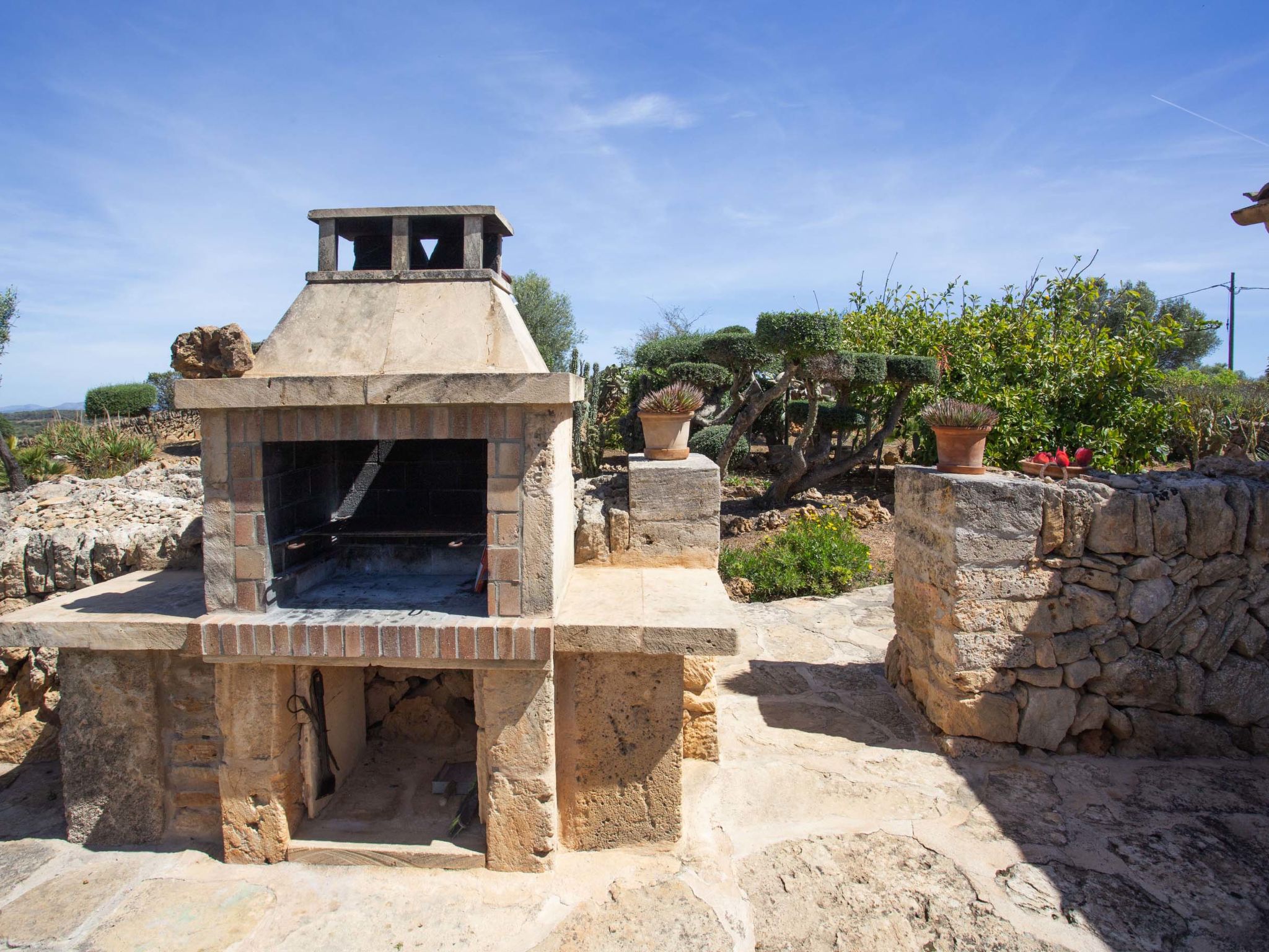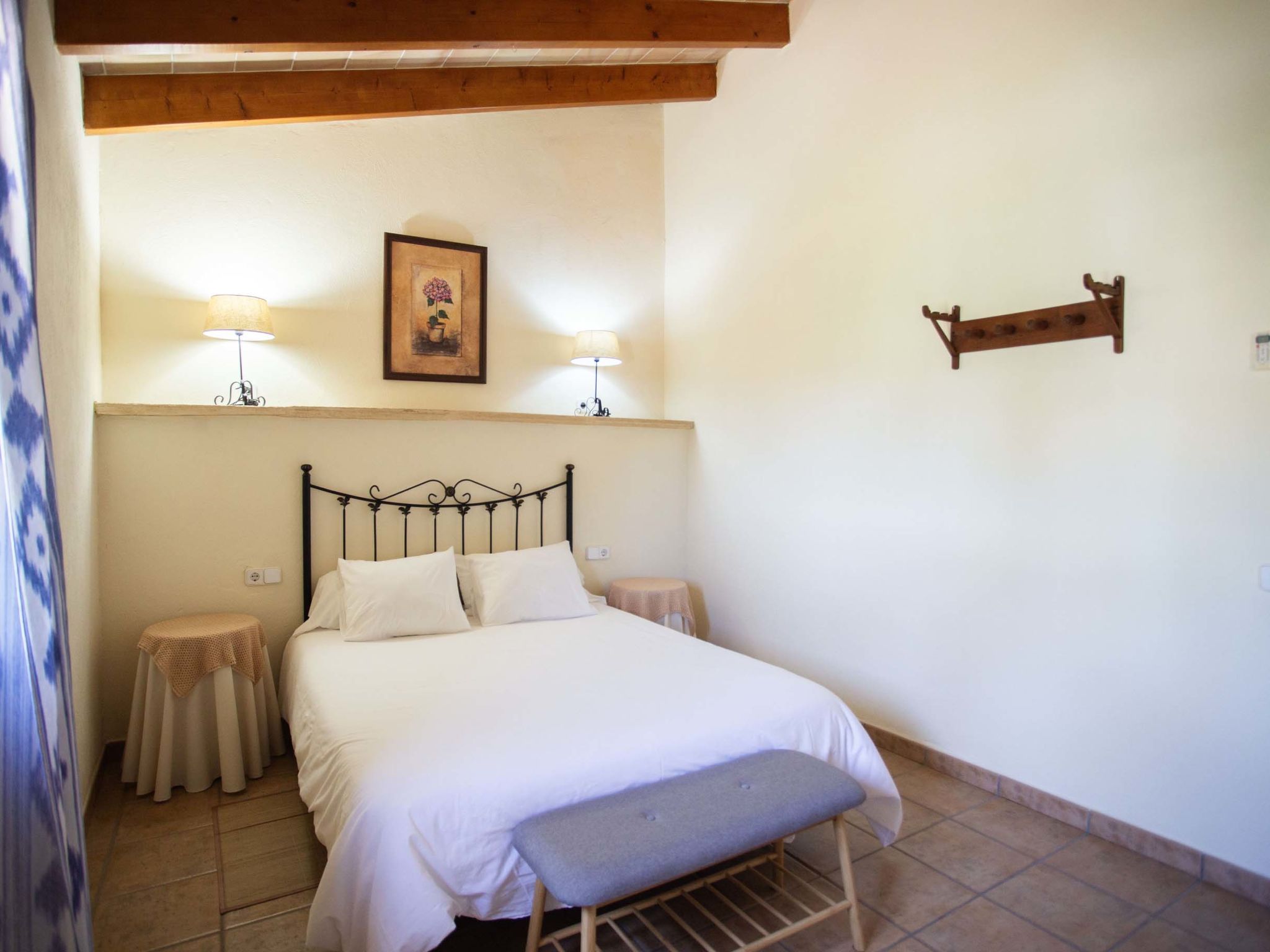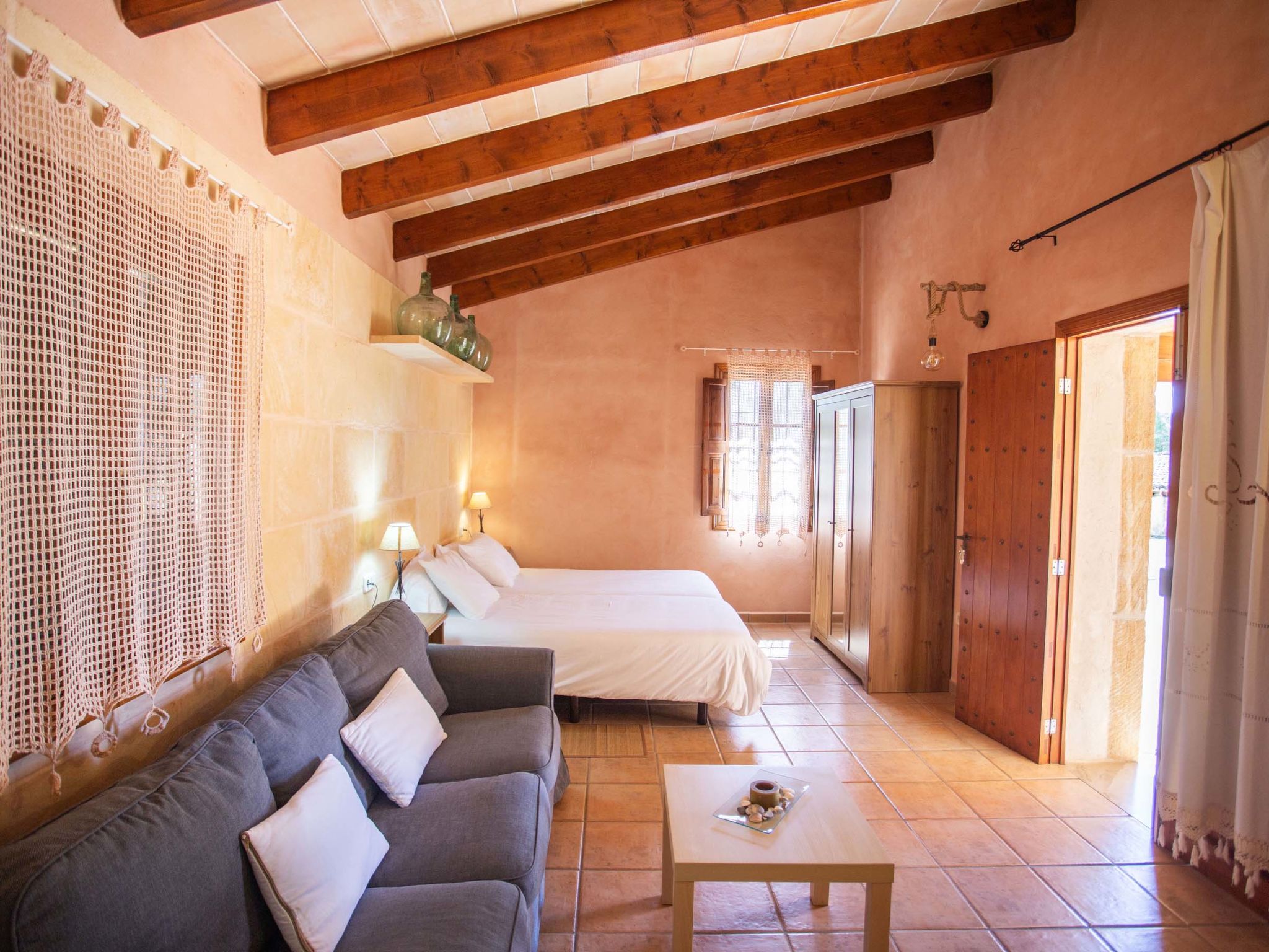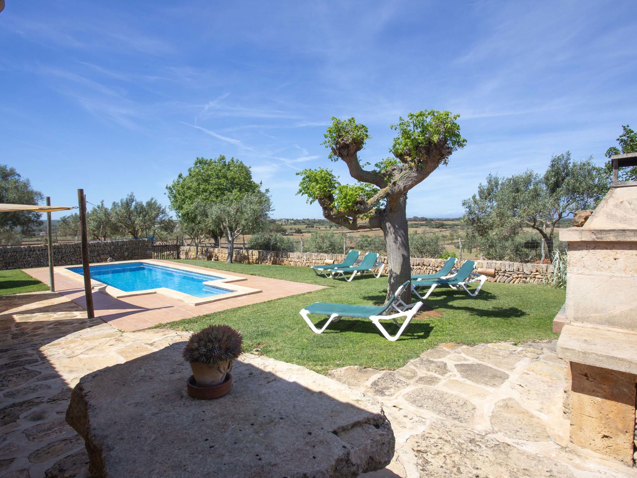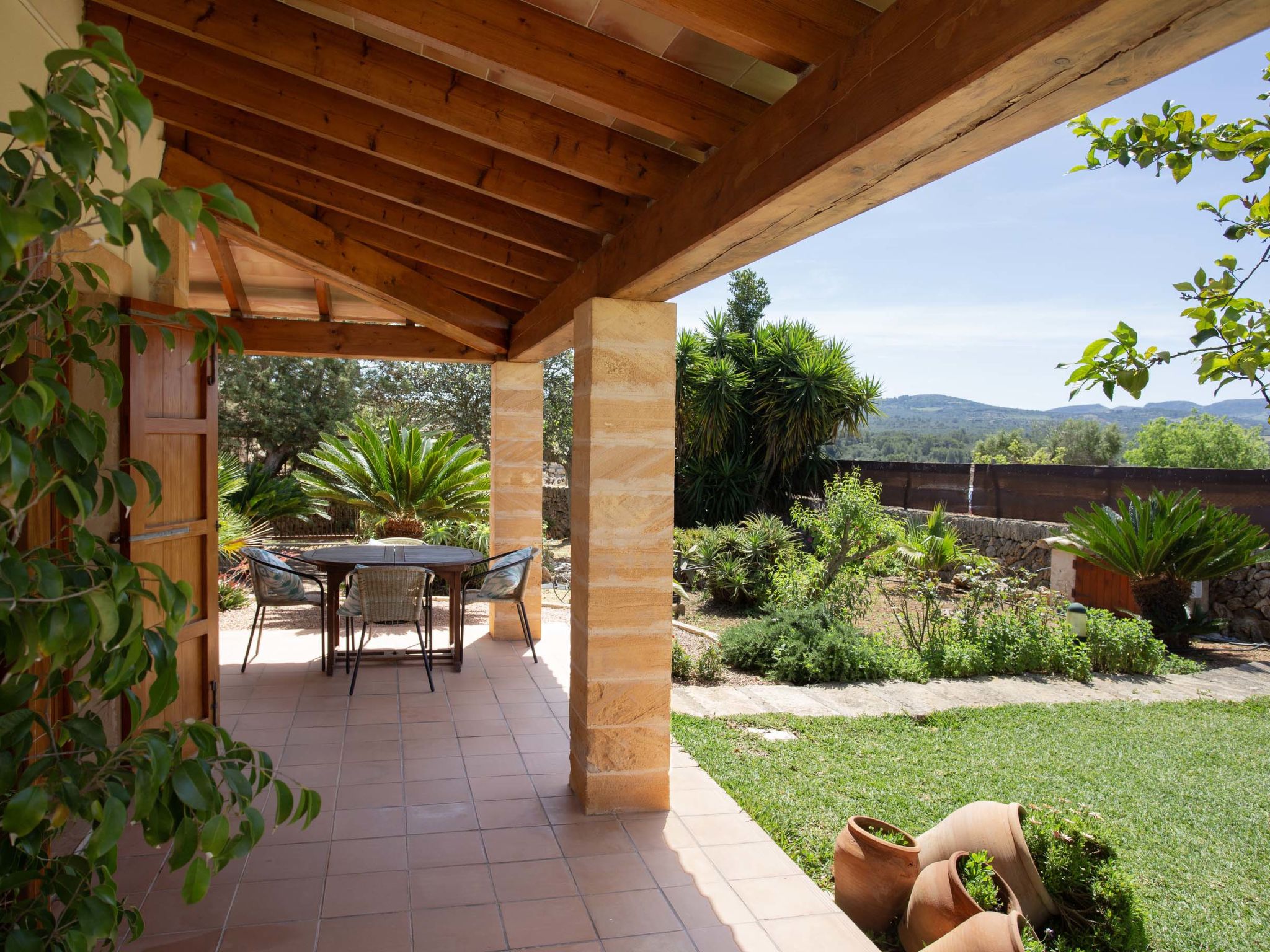 "Ca na Ines", 5-room house 185 m2. Object suitable for 8 adults. Spacious, practical and comfortable furnishings: living/dining room. 1 double bedroom with 2 beds (90 cm, length 190 cm), air conditioning and forced-air heating. 25 m2, Studio with 2 beds (90 cm, length 190 cm), shower/WC, air conditioning and forced-air heating. 1 double bedroom with 1 french bed (1 x 135 cm, length 190 cm), air conditioning and forced-air heating. 1 double bedroom with 1 french bed (1 x 150 cm, length 190 cm), air conditioning and forced-air heating. Large kitchen (4 hot plates, oven, dishwasher, toaster, kettle, microwave, electric coffee machine). Bath/WC, shower/WC. Air-conditioning, forced-air heating. Heating not available in all rooms. Natural stone floors. Garden. Terrace furniture, barbecue, deck chairs (8), covered balcony. Very beautiful view of the countryside. Facilities: washing machine, iron, children's high chair, baby cot for up to 2 year olds, hair dryer. Internet (WiFi, free). Parking at the house. Suitable for families. ETV/619 // Reg. Nr.: ESFCTU000007011000204438000000000000000000000ETV/6196
