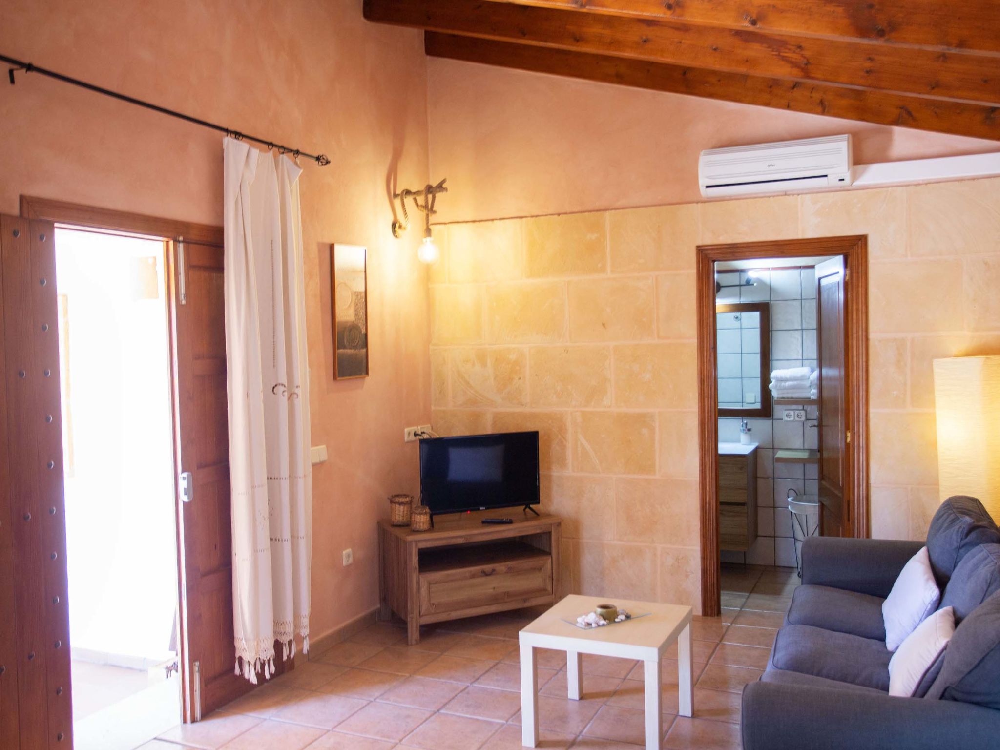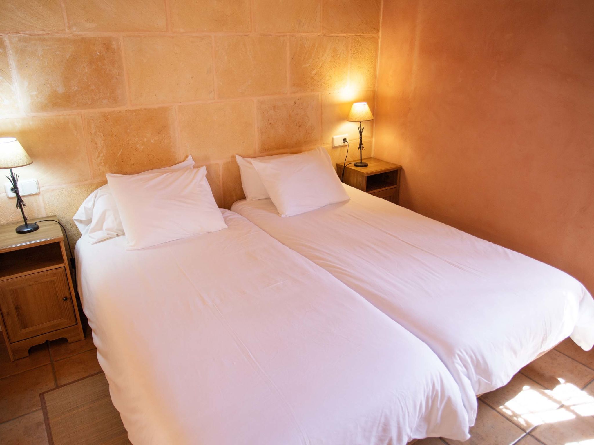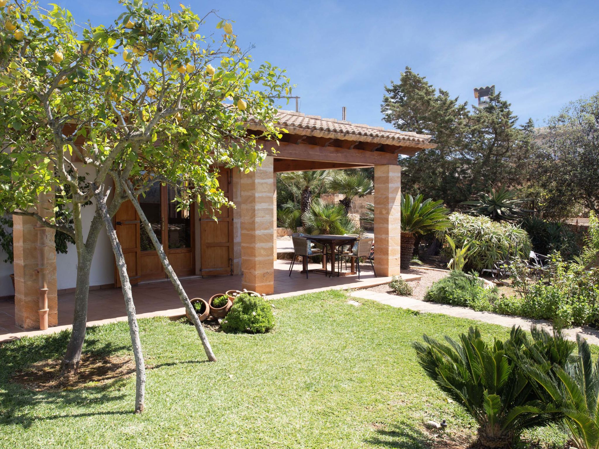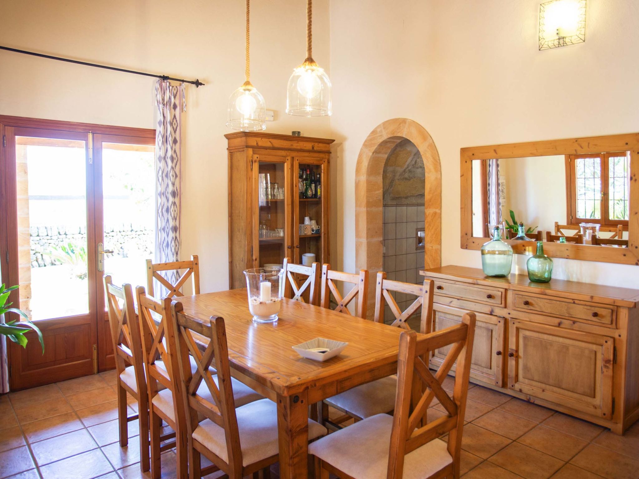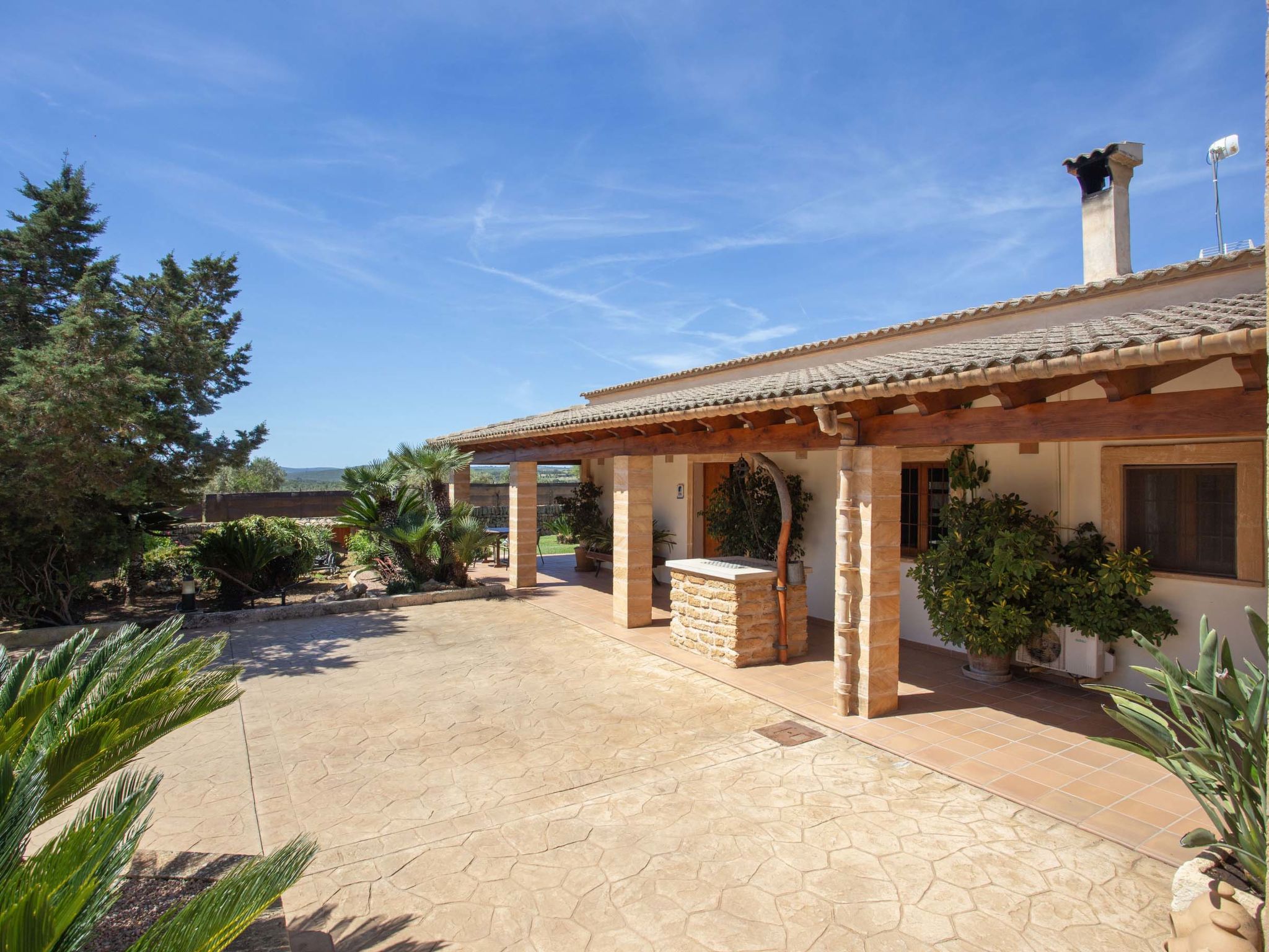 "Ca na Ines", 5-room house 185 m2. Object suitable for 8 adults. Spacious, practical and comfortable furnishings: living/dining room. 1 double bedroom with 2 beds (90 cm, length 190 cm), air conditioning and forced-air heating. 25 m2, Studio with 2 beds (90 cm, length 190 cm), shower/WC, air conditioning and forced-air heating. 1 double bedroom with 1 french bed (1 x 135 cm, length 190 cm), air conditioning and forced-air heating. 1 double bedroom with 1 french bed (1 x 150 cm, length 190 cm), air conditioning and forced-air heating. Large kitchen (4 hot plates, oven, dishwasher, toaster, kettle, microwave, electric coffee machine). Bath/WC, shower/WC. Air-conditioning, forced-air heating. Heating not available in all rooms. Natural stone floors. Garden. Terrace furniture, barbecue, deck chairs (8), covered balcony. Very beautiful view of the countryside. Facilities: washing machine, iron, children's high chair, baby cot for up to 2 year olds, hair dryer. Internet (WiFi, free). Parking at the house. Suitable for families. ETV/619 // Reg. Nr.: ESFCTU000007011000204438000000000000000000000ETV/6196